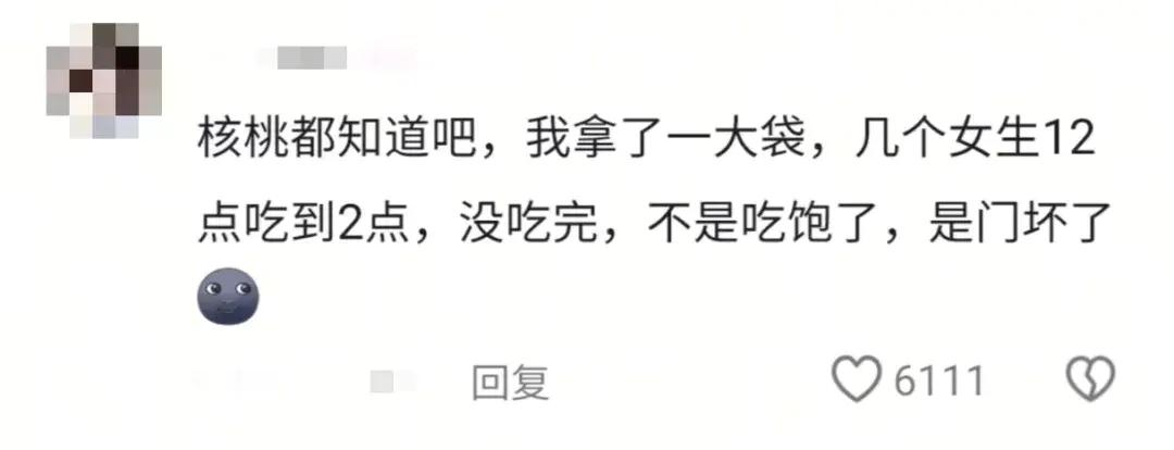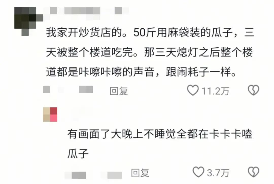 还有家里开炒货店的同学带来50斤瓜子,结果三天被整层楼的朋友吃完了宿管阿姨疑惑:“半夜哪来老鼠声?”,同学:“咔咔咔”(嚼嚼嚼)。