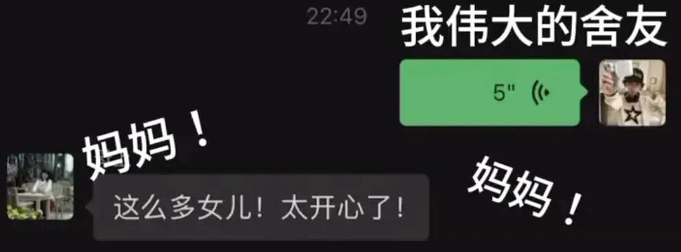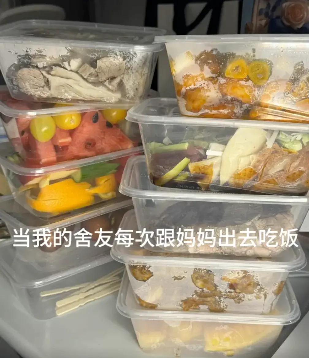 爸妈手艺太好 回家多了几个“异姓兄弟”。还有同学分享舍友每次和妈妈出去吃饭都会带回十几个打包盒,被“投喂”的大家纷纷在语音里亲昵地喊“妈妈”,“一个妈妈养了六个女儿”。