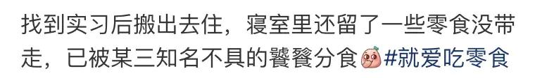 出去实习后,留在宿舍的零食,也被舍友迅速“瓜分”完毕。
