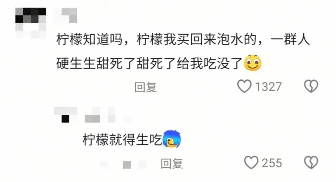 除了超强“牙口”,舍友们的进食速度也不甘示弱,进食速度 堪比食物“粉碎机”。有同学分享,自己买了一袋子柠檬回来泡水舍友就这样硬生生给吃完了,舍友:“甜死了甜死了”。