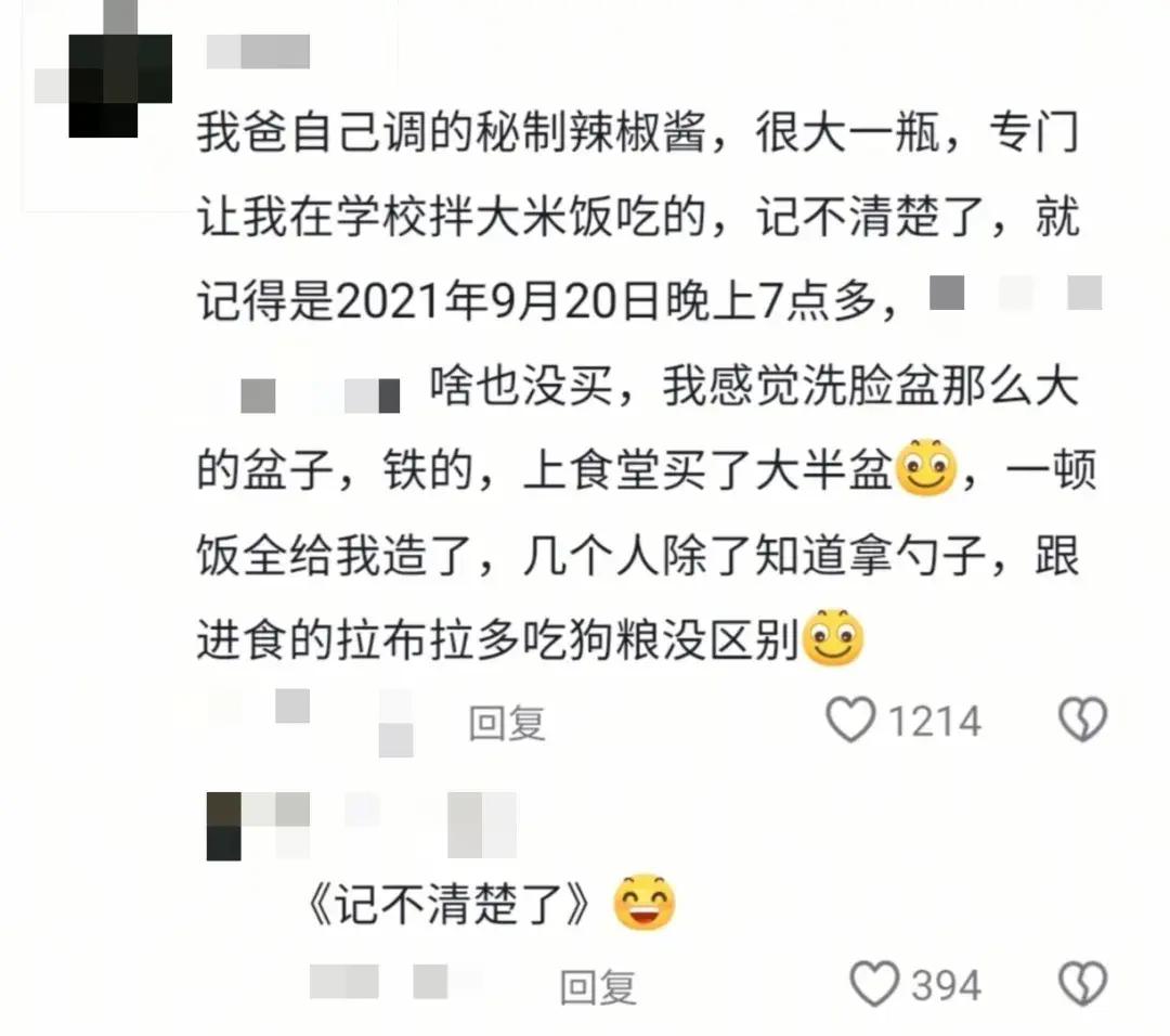 “记不清楚了”“只记得是2021年9月......”舍友们一顿饭吃完了我一大瓶辣椒酱。网友:“其实是刻骨铭心。”