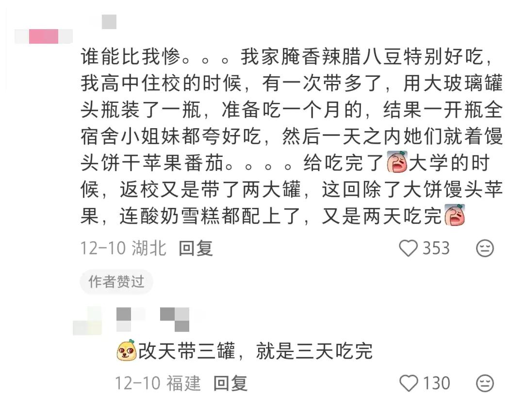 从家里带来一罐腌菜,本来打算吃一个月慷慨与舍友分享,第二天:“我罐子怎么见底了?”