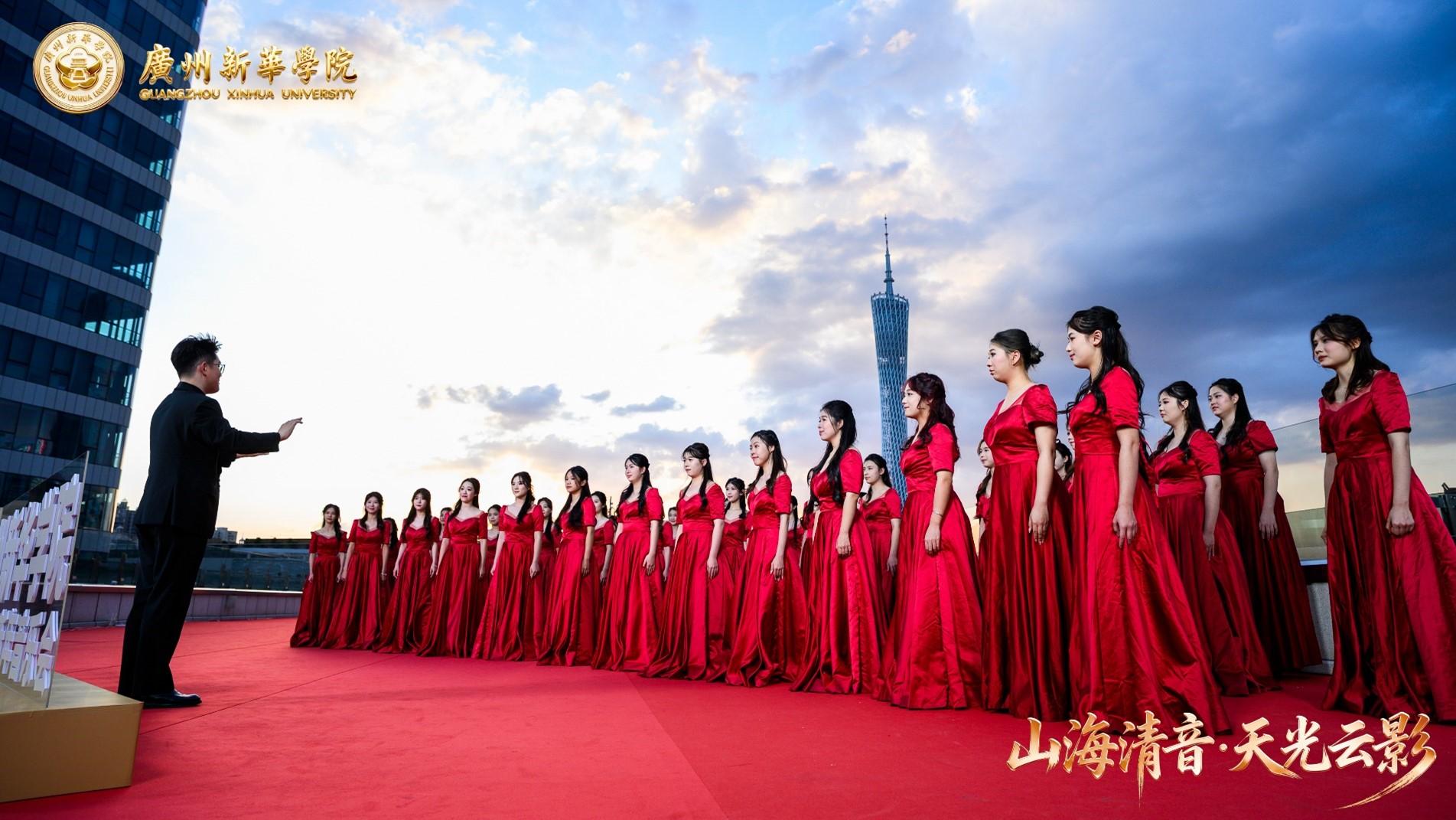第三篇章“清音卷”,回归内心,叩问初心。女声独唱《爱给了你》深情款款,诠释奉献之美;一曲《最初的梦想》激励人们坚守出发时的赤诚。最终,音乐会在全体演员与线上观众共鸣的广州新华学院校歌《启航》中达到高潮,将个人理想、学校发展与湾区未来紧密相连。