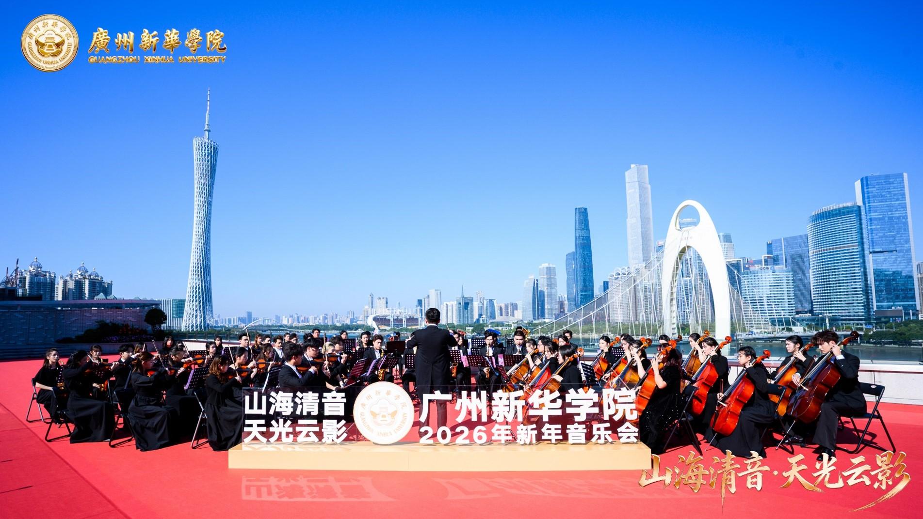 2025年12月31日,“山海清音·天光云影——广州新华学院城市天际线2026新年音乐会”在云端上演。这场音乐会以广州塔为核心意象,联动广州东塔、广州西塔、猎德大桥与珠江新城天际线为幕,将艺术感染力、思政引领力与城市空间相融共振,为师生、校友及社会各界献上一份跨越时空的新年厚礼。