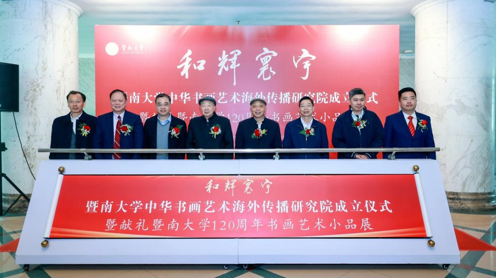 2026年1月3日下午,“和辉寰宇——暨南大学中华书画艺术海外传播研究院成立仪式暨献礼暨南大学120周年书画艺术小品展”在暨大石牌校区举行。本次活动通过成立专业研究机构与举办主题展览相结合的形式,系统推动中华书画艺术的国际传播,献礼暨大建校120周年,为中华优秀传统文化“出海”架设学术与文化交流的桥梁。活动由暨大文学院、暨大中华文化港澳台与海外传承传播协同创新中心(以下简称“协同中心”)共同主办。