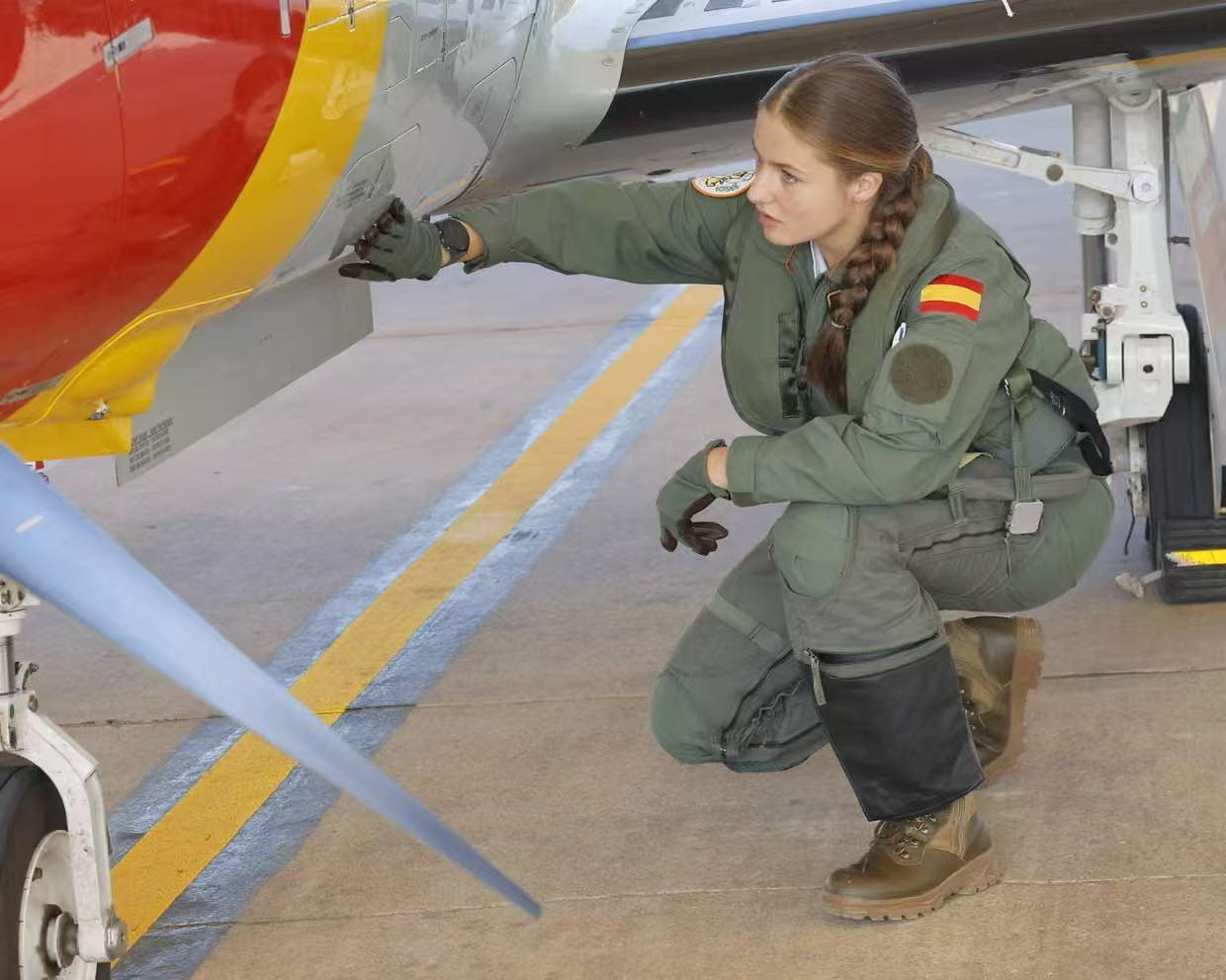 莱昂诺尔从小接受的是高度制度化、军事化的培养路线。她目前已完成陆军官校训练,并登上海军训练舰,穿着救生衣实际参与过海上操演、攀爬16层楼高的桅杆。她还在不久前完成了第一次单独驾驶飞机落地,未来也将进入太空军体系受训。她成长于西班牙王室在政治信任危机后力求“制度修复”的关键时期,被定位为“重塑王室正当性”的重要象征。
