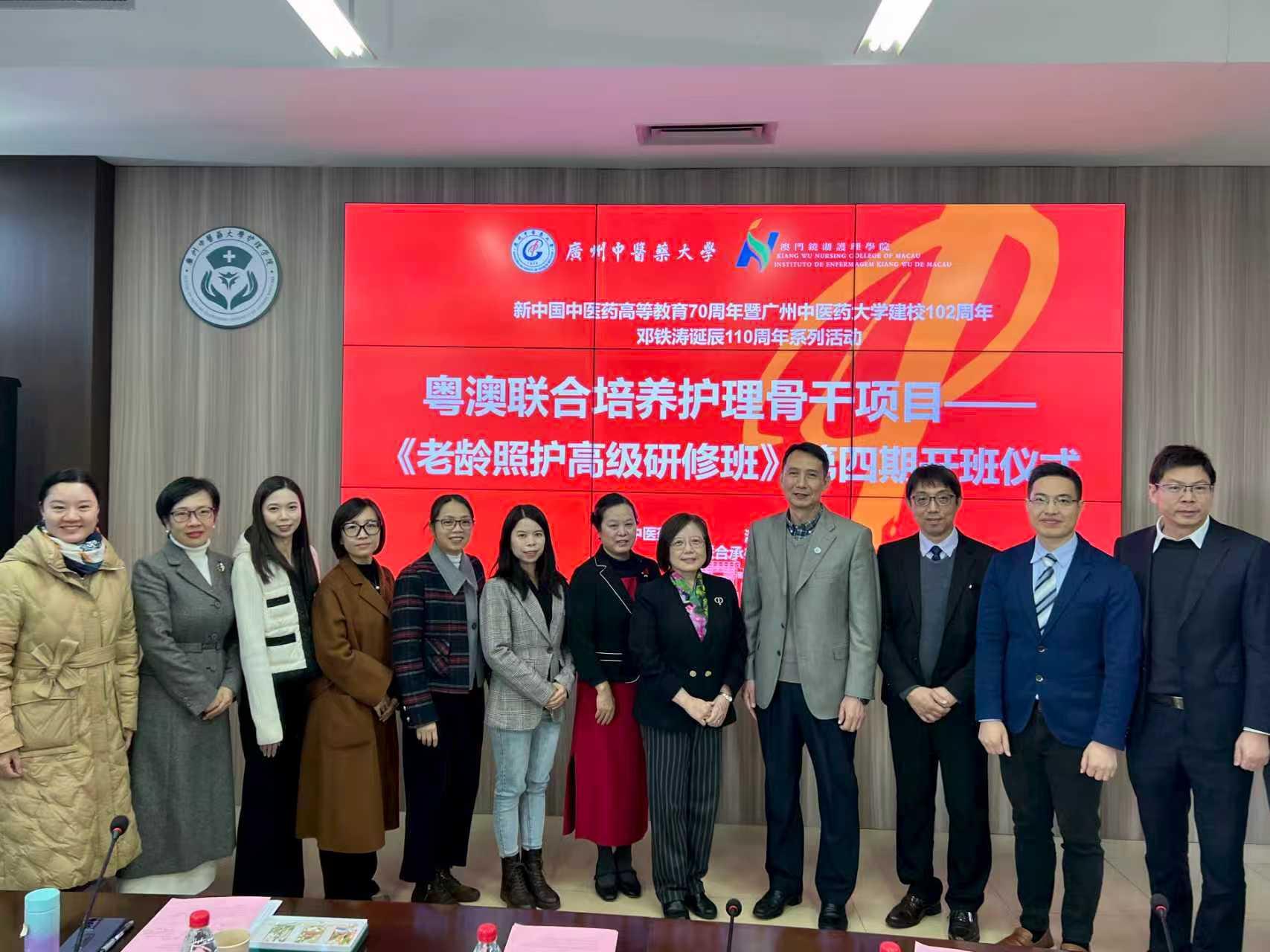 为深化澳门老龄照护人才培养、加强粤澳两地护理学术交流与合作,1月6日,由澳门镜湖护理学院与广州中医药大学护理学院联合主办的粤澳联合培养护理骨干项目——《老龄照护高级研修班》(第四期)开班仪式暨线下授课活动,在广州中医药大学大学城校区护理楼举行。