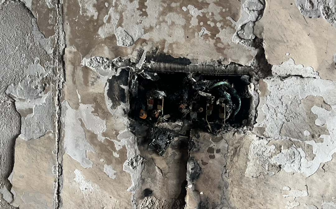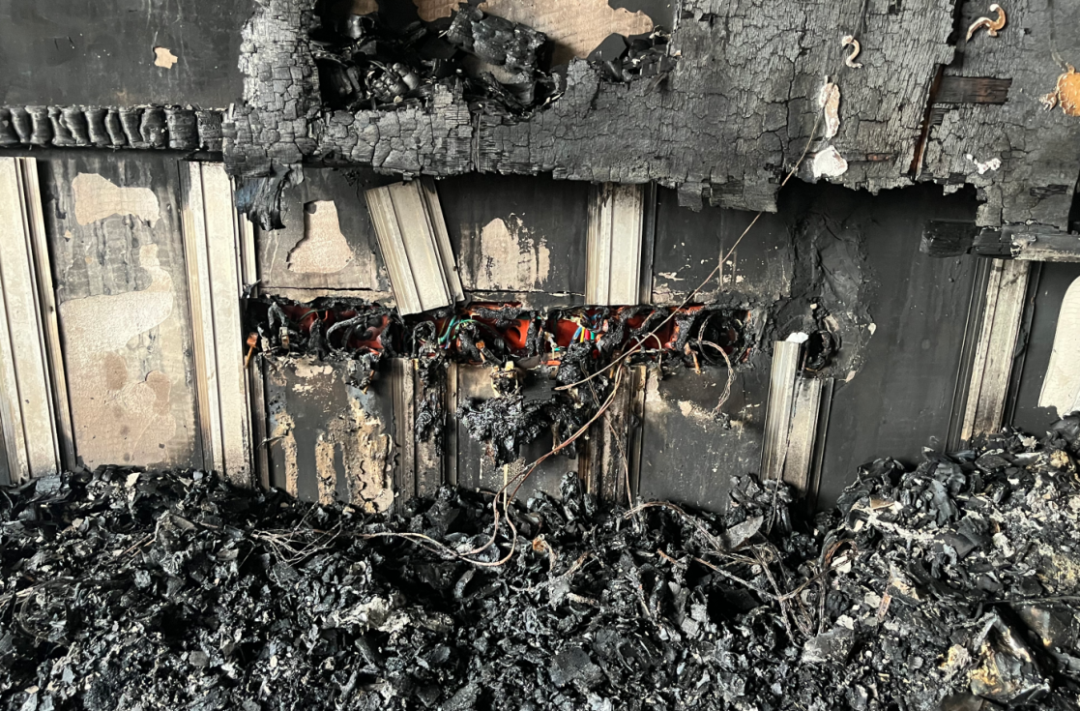 火灾烧损住宅内墙面、地面、天花板、电视机等物品过火面积约80平方米,直接经济损失约9.5万余元。事后户主莫女士介绍:“事发当天,7时16分送娃上学,出门前记得主卧床头边插板上手机充电器没拔,家里面电气设备电源也没关。”