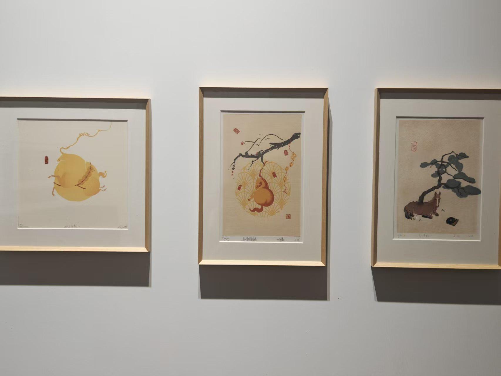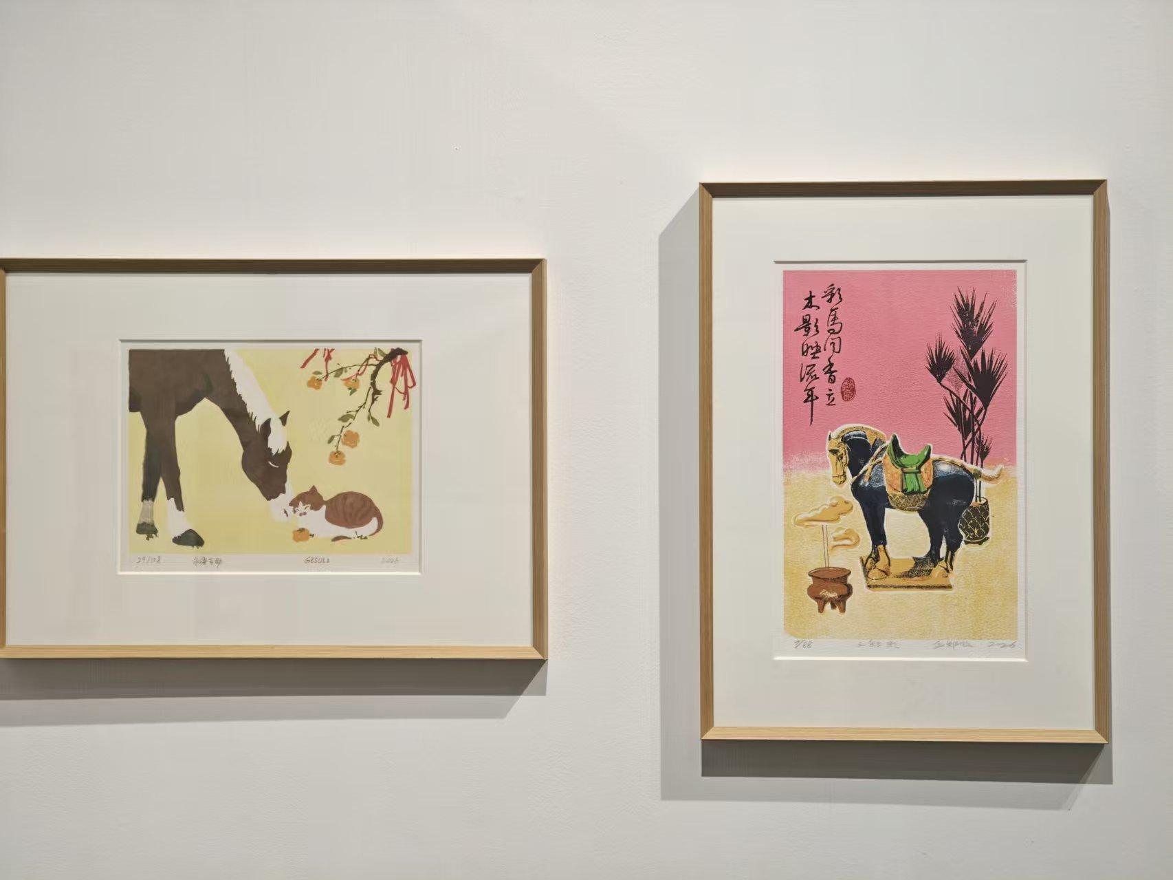 参展作品浓缩了版画艺术的多元表达,木刻、石版、铜版、丝网、数码等多版种全面呈现。孙亚南创作的《春风得意》以五种色彩的木板套色工艺,塑造出微笑的马肖像,既保留版画肌理,又融入潮流艺术风格,成为传统技法创新表达的典范。