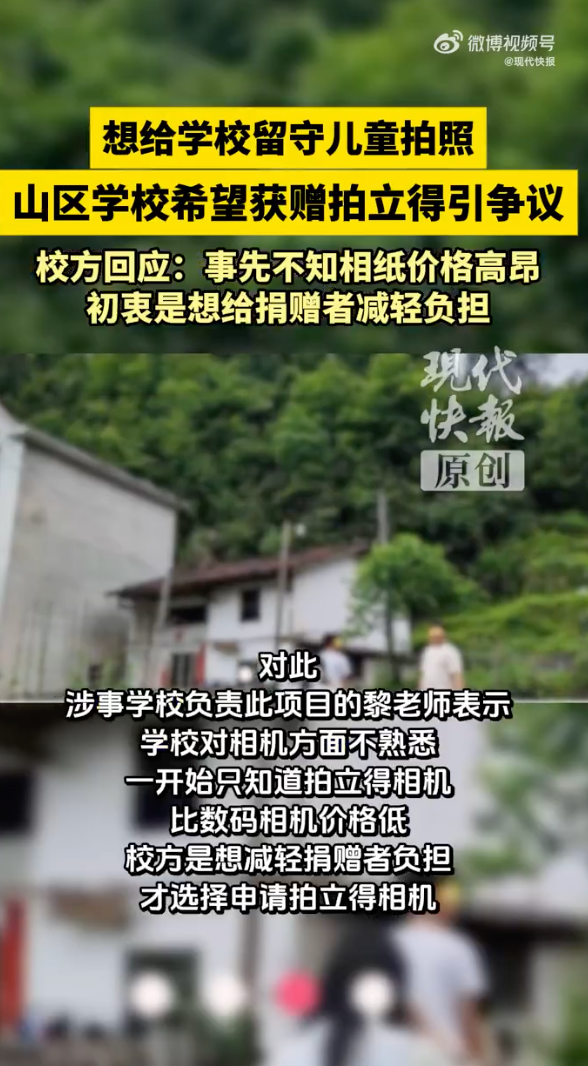 对此,有网友认为,拍立得相机使用成本较高,相纸价格较高,而且相纸因供不应求一直在涨价,如今已经涨到了每张超过5元,这可能与山区学校的实际需求不符。