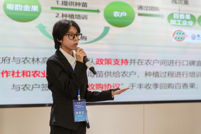 乡村振兴领域,学生团队深入田间地头,以科技破解产业发展难题,贡献“新华方案”。管理学院的《粤韵金果——黄金百香果科技赋能乡村振兴计划》项目针对百香果产业三大痛点,研发超低温脱毒等三大核心技术,脱毒率达99.12%,每亩减少损失3500元,通过“种苗企业+合作社+农户”模式,带动多地农户种植,产值提升30%以上。艺术设计与传媒学院的《乡创IP化运营与价值共创路径探索——以“九龙镇芽宝”为例》项目创新“IP托管+校地共建”机制,将九龙镇地域元素转化为“芽宝”IP,开发文创产品和旅游线路,建立长效合作工作站,带动当地旅游收入增长25%,提供了可复制的运营模式。