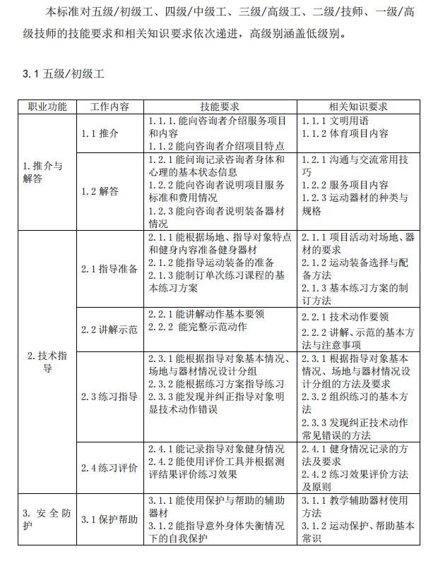 根据《国家职业资格目录(2021年版)》,从事滑雪等高危险性体育项目指导服务的社会体育指导人员,应取得相应职业资格证书,并在依法取得许可的经营单位内开展工作。根据人力资源和社会保障部、国家体育总局联合制定的《社会体育指导员国家职业技能标准(修订版)》,包含滑雪等职业方向在内的社会体育指导员,在技能等级设定上分为五个级别,五级即初级工,职业功能包括推介与解答、技术指导、安全防护,正规培训达到规定标准学时数并取得结业证为申报条件。