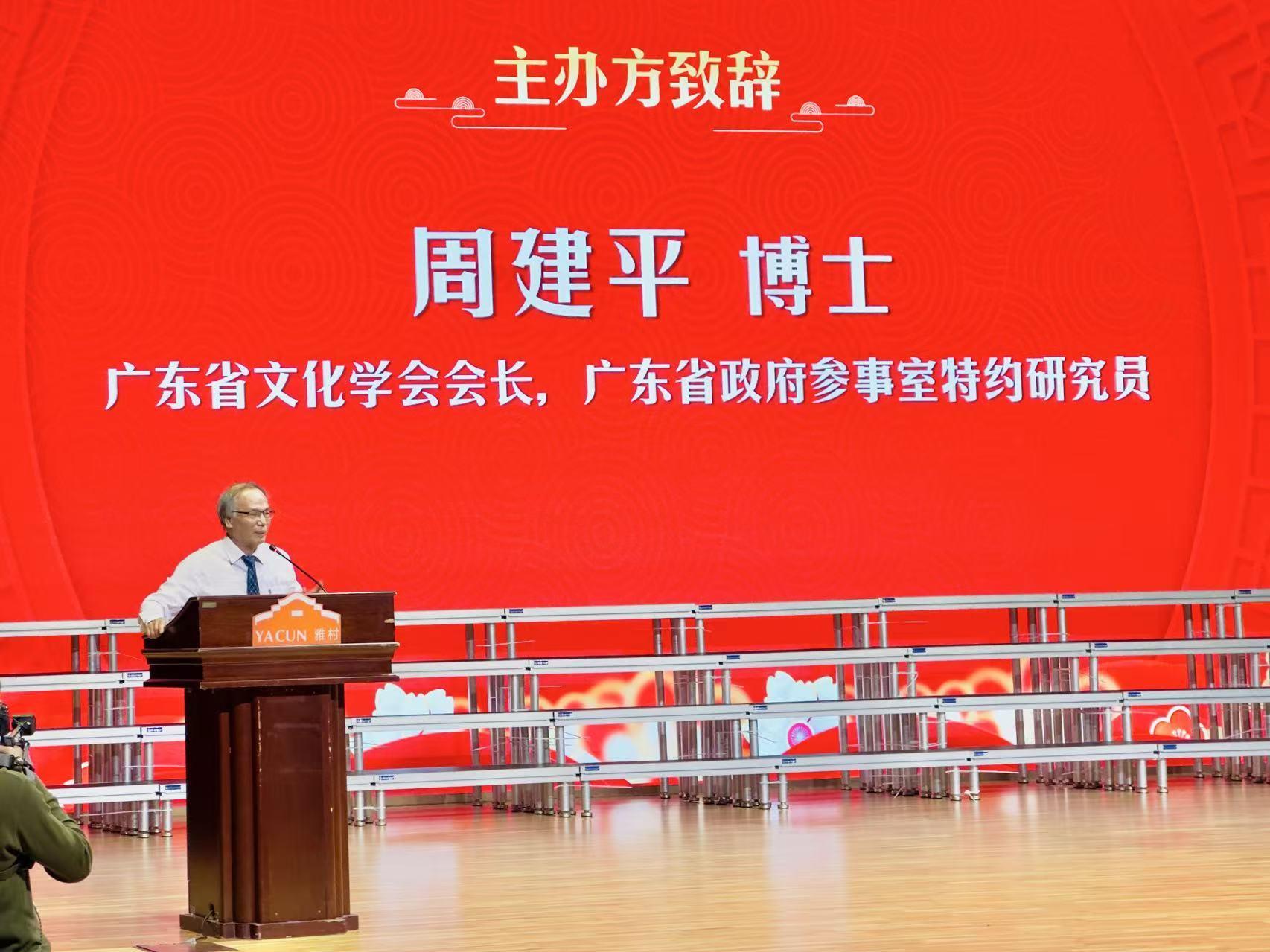 广东省文化学会会长、省政府参约研究员、中国晚报协会学术委员会副主任周建平博士致辞。他系统回顾了学会过去一年以文化为根、以经典为脉所取得的丰硕成果,并对2026年的工作进行了展望与部署,号召全体同仁继续携手,以笔墨记录时代,以热忱传承文明。