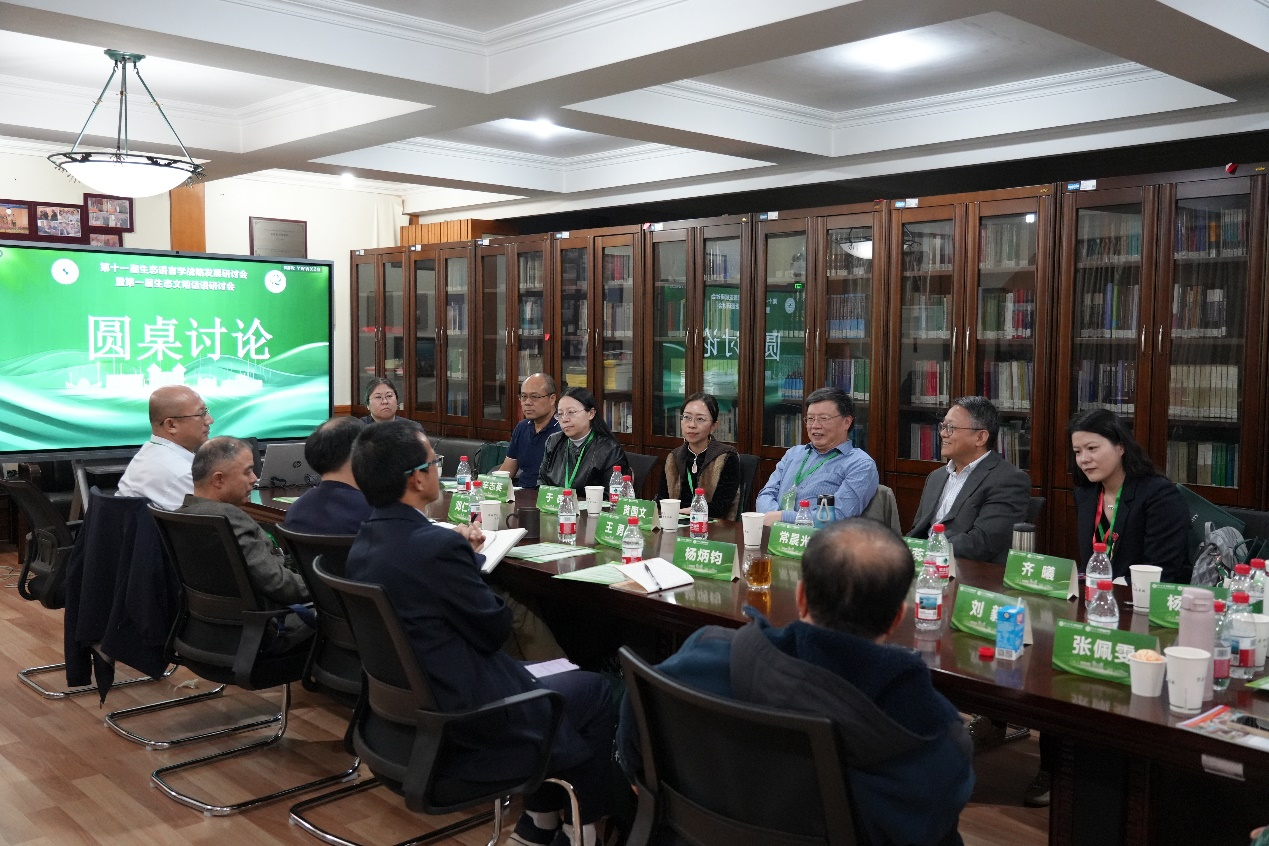 在圆桌讨论环节,与会学者系统梳理了生态文明话语研究的既有成果,并就未来发展方向展开了深入探讨。王勇教授对圆桌讨论进行了总结,倡导生态文明话语研究必须扎根社会实际,聚焦真实语境中的语言现象,坚持形式分析与意义建构相统一的原则,确保研究既有理论深度,又具现实关怀。