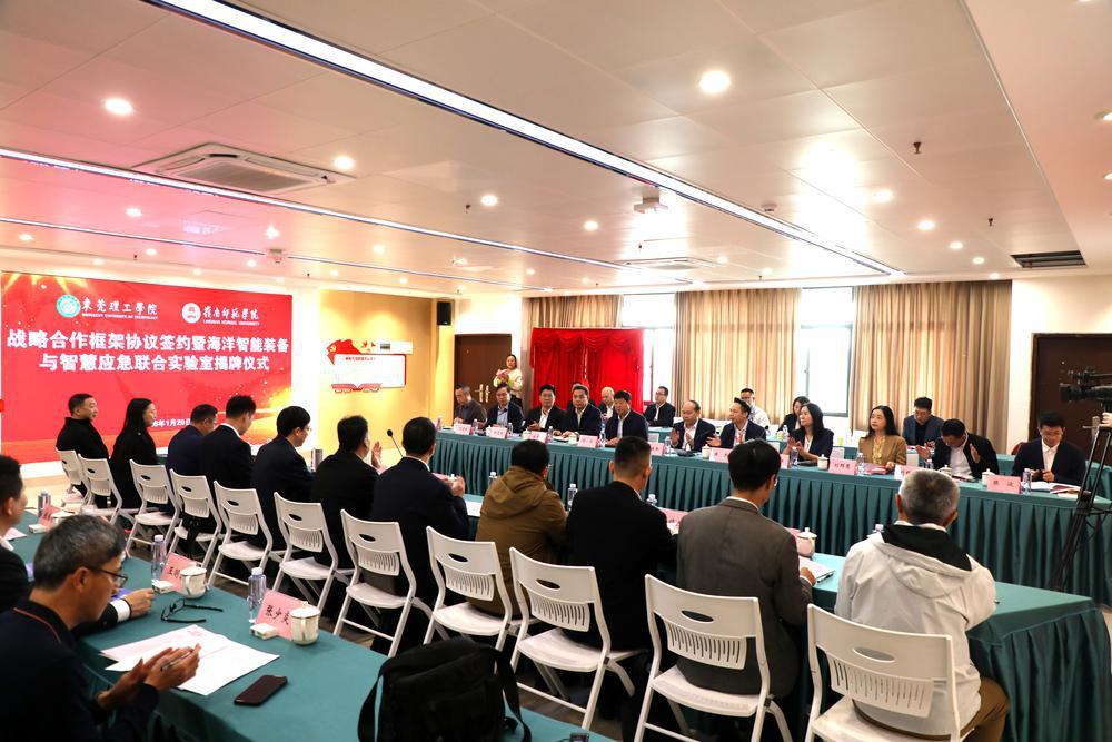 1月20日,岭南师范学院携手东莞理工学院共建的“海洋智能装备与智慧应急联合实验室”在岭南师范学院揭牌。两校签署战略合作框架协议,启动海洋领域的合作,瞄准“破解‘卡脖子’技术”,构建智慧应急体系,服务国家海洋强国战略,助力广东全面建成海洋强省。