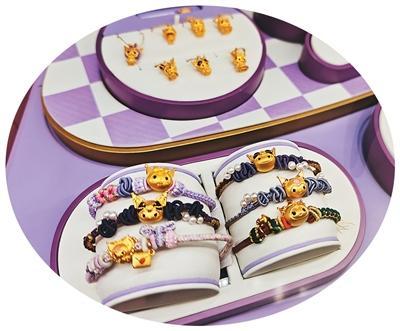 在北京一家周大福门店,迪士尼、疯狂动物城、黑神话·悟空等IP联名金饰,被陈列在门店内显眼位置;一旁的潮宏基店内,黄油小熊、线条小狗、酷洛米、蜡笔小新等IP联名金饰也连成一片,成为陈列展柜里一道活泼亮丽的风景线,吸引不少年轻消费者驻足。