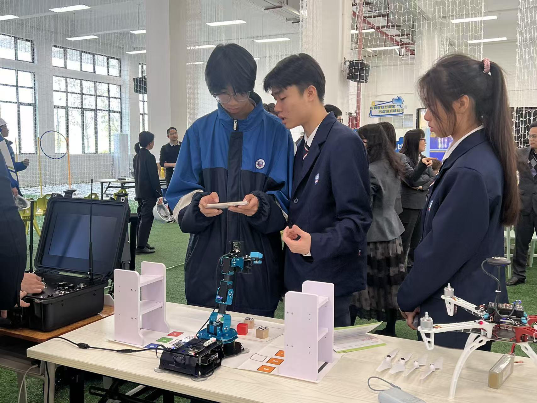 在广州市信息技术职业学校,学子们依次探访低空新机遇展区、AI具身智能体验区等特色场地,参与无人机基础知识讲解、古建清洁小飞手实操、智慧城市智能体搭建等趣味课程,在“智翔·慧芯”主题体验中感受科技与职业的融合魅力,同时还体验了非遗+AI、中医药文化等源自职业体验中心的跨界特色项目。