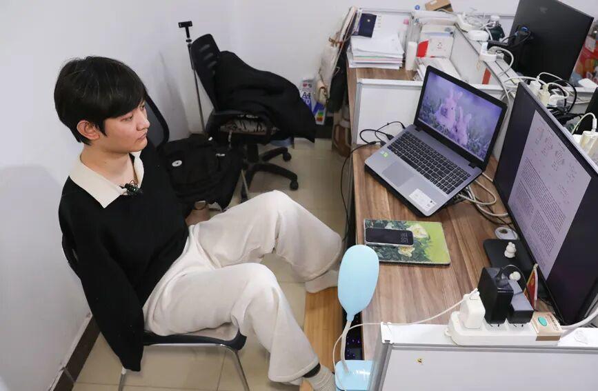1月26日上午8点,数学学院实验室里,王海港开始熟练地用脚敲击键盘,调试量子信息的理论模型,直到天黑才离开工位。这位博三学生的生活节奏,与多数科研工作者无异。