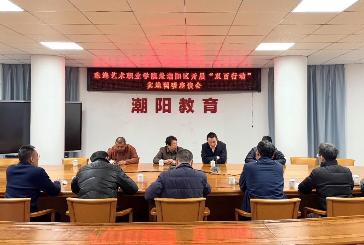 服务区域发展、赋能乡村振兴是新时代职业教育的重要使命。近日,珠海艺术职业学院常务副校长陈传毅率专题调研组,赴汕头市潮阳区开展“双百行动”实地调研与项目对接,着力推动校地合作走深走实,积极探索职业院校精准服务地方发展的有效路径。