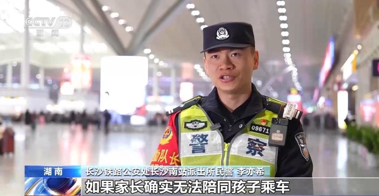 长沙铁路公安处长沙南站派出所民警李亦希提醒,如果家长确实无法随行,务必委托成年亲友陪伴乘车,绝对禁止让孩子自行购票乘车。由于车站站台较多,车辆密集,相邻站台可能同时停靠列车,极易发生上错车或走失等情况,途中如有紧急情况,要立即寻求铁路民警和铁路工作人员帮助。
