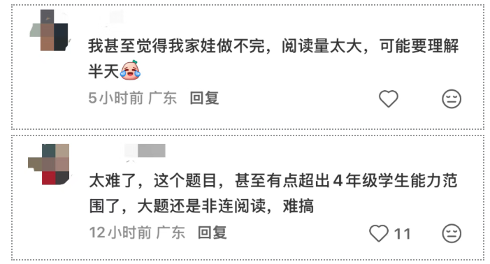 本次期末考,罗湖区、福田区的四年级语文试卷同样引发家长讨论。