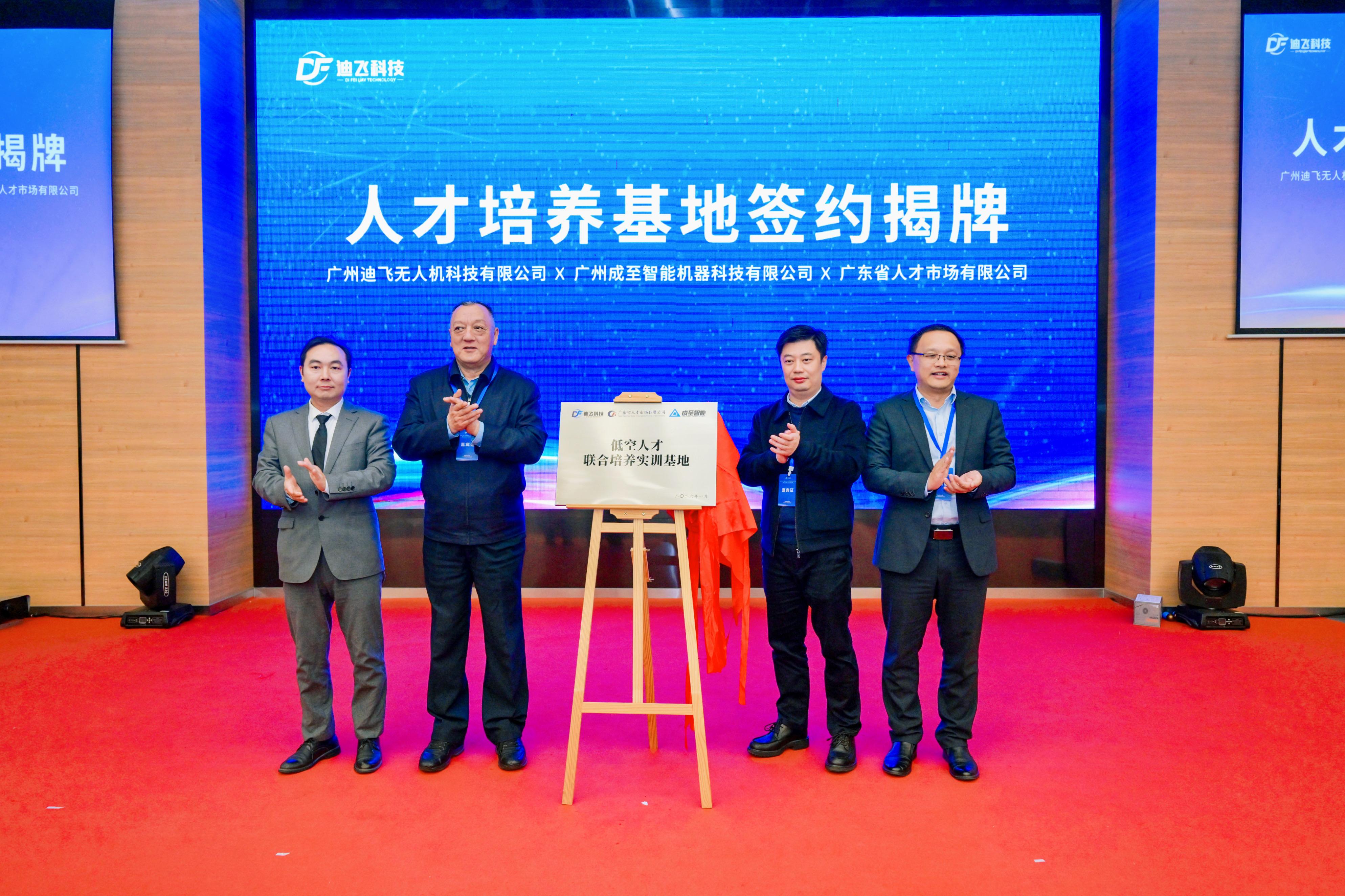 据悉,“低空经济产业学院”于去年12月在广东碧桂园职业学院揭牌成立,此次“低空经济产业学院人才培养基地”由广州迪飞无人机科技有限公司(以下简称“迪飞科技”)与广东省人才市场有限公司、广州成至智能机器科技有限公司多方达成战略合作,共同揭牌成立。
