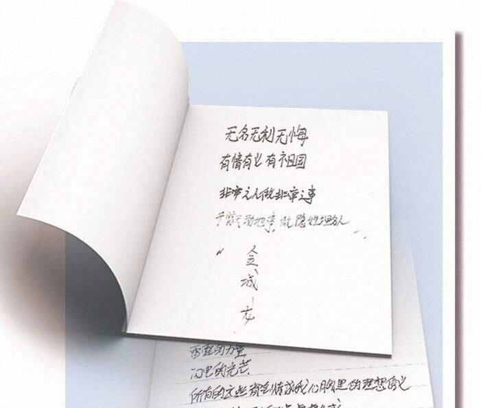 金城龙的笔记本上写着“无名无利无悔,有情有义有祖国”。资料图片