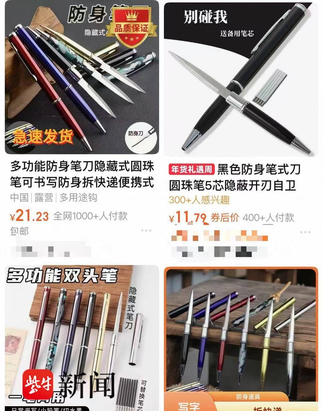据公开报道,2022年11月,一则“学校门口卖的圆珠笔暗藏真刀”的视频曾引发热议。视频中,一位学生家长手握一支圆珠笔,从外观上看,这支笔与普通圆珠笔无异,但当其中一端的笔帽被拔下后,露出了一把约成人食指长度的小刀。这位家长介绍,笔是孩子从学校门口买的。