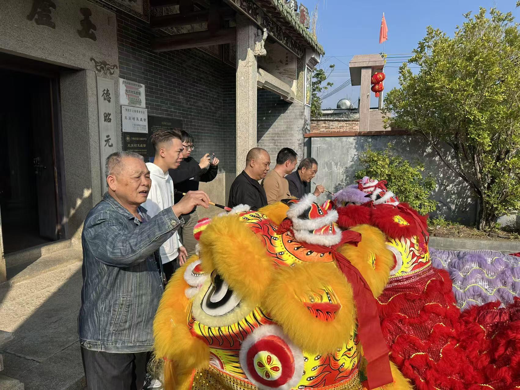 仪式流程:由德高望重之人执笔,以朱砂加白酒为颜料,按“一点天庭、二点眼睛、三点口利”的仪轨依次点化,最后从狮头顺至狮尾,完成“旺身”仪式;