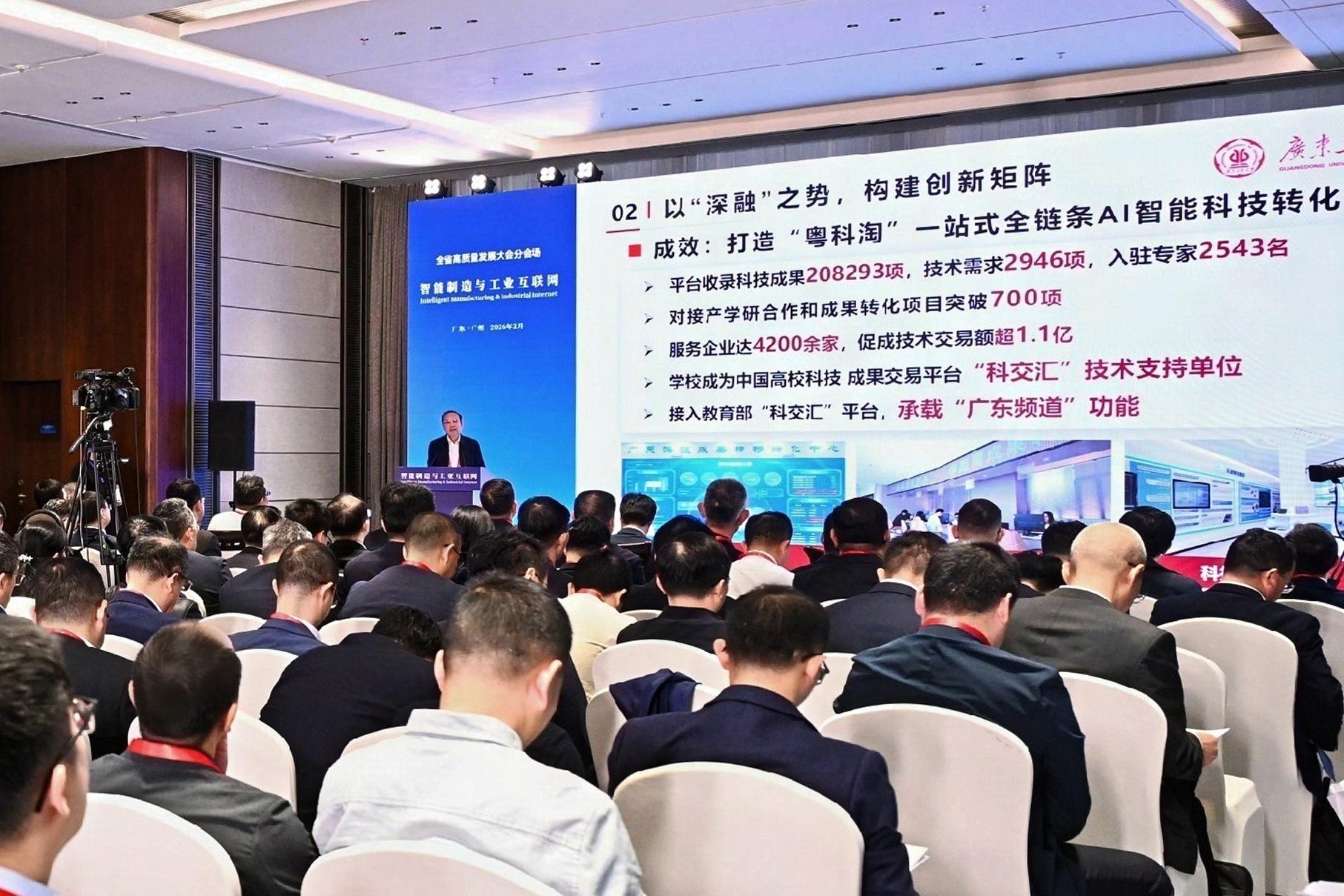 2月24日农历丙午马年开工第一天,广东省委、省政府召开全省高质量发展大会,聚焦制造业与服务业协同发展这一主题,深化研讨在更高水平上推进高质量发展,更好带动广东“十五五”开好局、起好步。广东工业大学党委书记白建刚在省主会场出席会议,并在“‘百千万工程’县域产业融合与高质量发展”分会场作专题发言;校长邱学青出席“智能制造与工业互联网”分会场并作专题发言;副校长余林,党委常委、副校长鲁仁全分别出席“产业融合与政策创新”与“科技与金融创新赋能产业融合”分会场。广工通过多维度参与,充分展现在服务国家重大战略和区域经济社会发展中的积极作为与显著成效,为推动产业结构优化升级、激活高质量发展新动能贡献广工智慧。