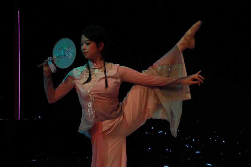 小品《唐僧好难》以现代视角演绎西游故事,在密集笑点中传递“走出去看世界”的主题。影视串烧《谁DNA动了!》汇集多部经典影视音乐,演员绕场互动点燃全场热情;爵士古典双人舞《山河有律》融合东方柔美与爵士张力,展现青春活力。歌剧选段《饮酒歌》(选自威尔第歌剧《茶花女》)以专业唱腔震撼全场,为晚会掀起高潮。合唱《思念》以海外学子共同创作的背景打动人心,随后朱建威导演指挥全场合唱《难忘今宵》,将气氛再次推向温暖高潮。