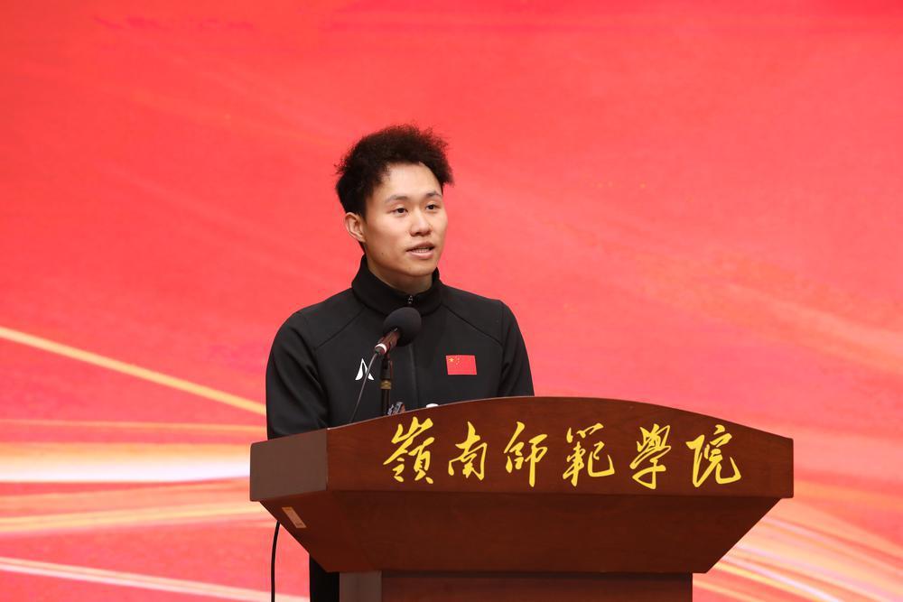 3月10日,跳水奥运冠军、男子三米板“大满贯”谢思埸应邀走进岭南师范学院音乐厅,登上该校第77期“行走的思政课堂”,以“体育是一场没有硝烟的战争”为主题,为岭师和附中共600余名师生带来一堂饱含爱国情怀与拼搏精神的思政大课。