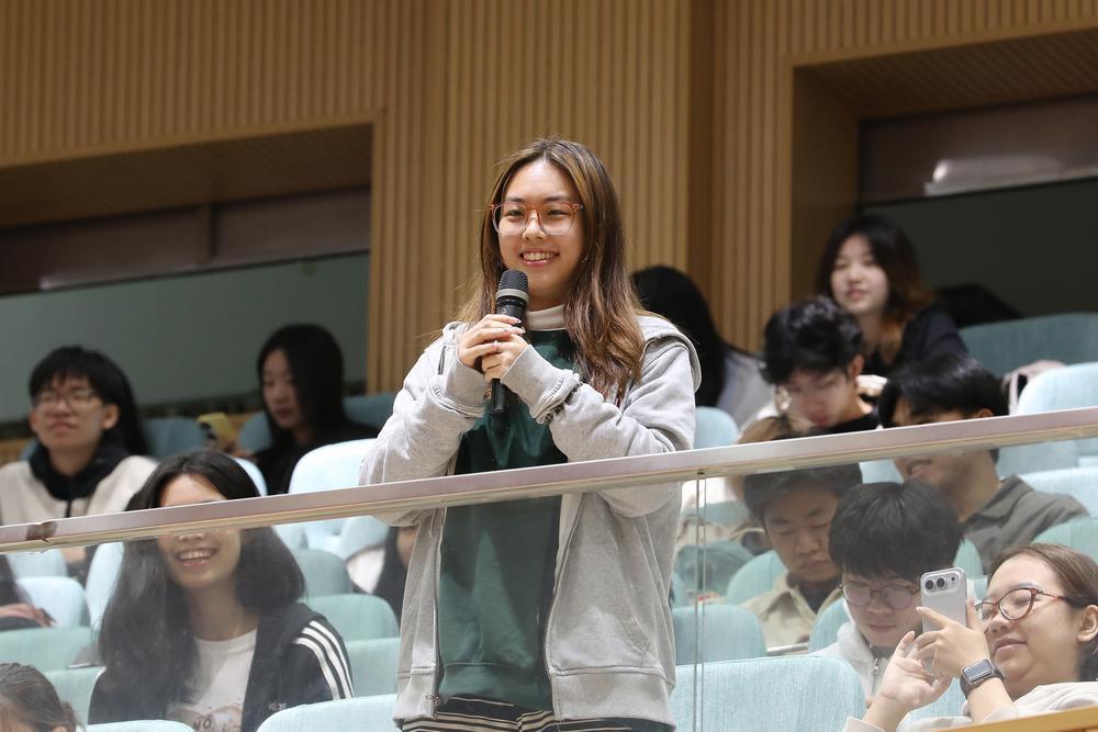 他鲜活而又生动的奋斗历程点燃了现场青春激情。谢思埸鼓励青年学生在各自的人生赛道上勇敢冲锋,“强者不是不流泪,而是含着泪依然奔跑;胜者不是不害怕,而是心怀恐惧依然向前。”他用“大满贯”经历点燃青年斗志,激励学子们将个人理想融入民族复兴伟业。谢思埸的回答让学子们读懂了他“为国争光”的信仰史诗和“永不言败”的青春教科书。