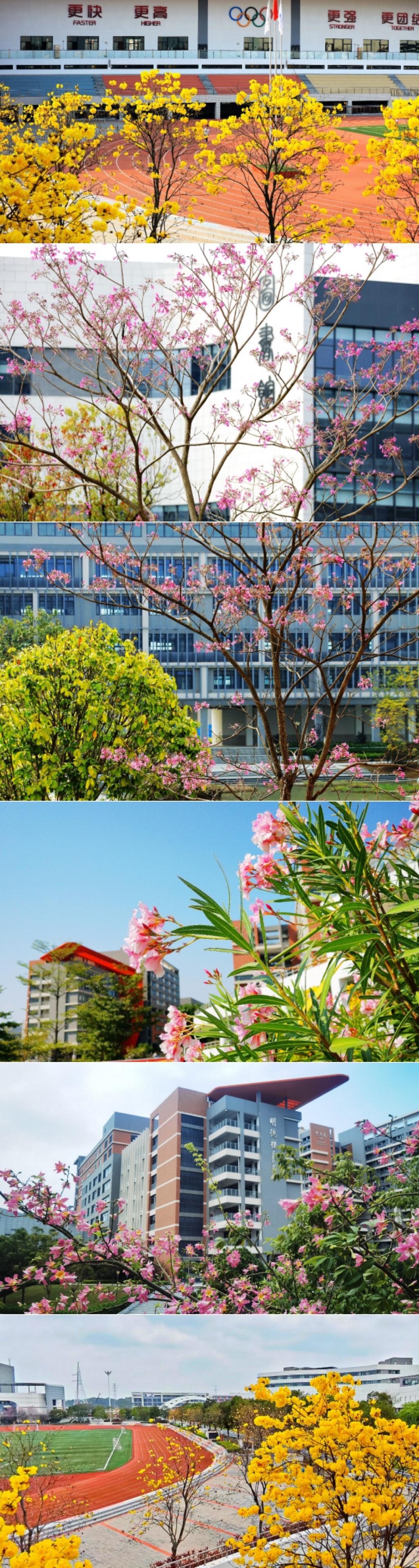 春风如约而至,吹遍广州新华学院的每一处角落,繁花满蹊,美不胜收。