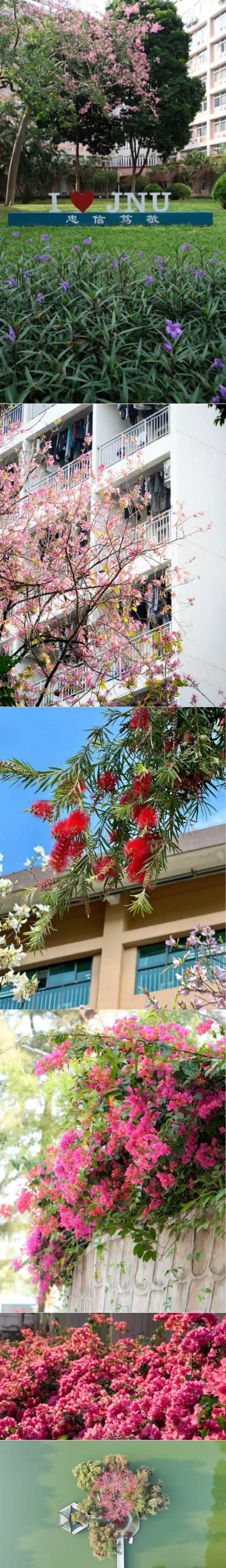 当春风叩开暨南园的门扉,整座校园便成了名副其实的 “暨南花园”。红棉燃霞,紫荆吹雪,风铃木摇响满树金铃,三角梅铺就绯红花瀑,连风里都裹着草木的清甜与书页的墨香。百廿暨南的春日,既有岭南花木的热烈奔放,也有学府文脉的温润绵长,每一寸春光,都写满了生生不息的希望。
