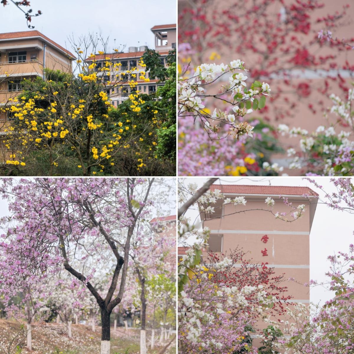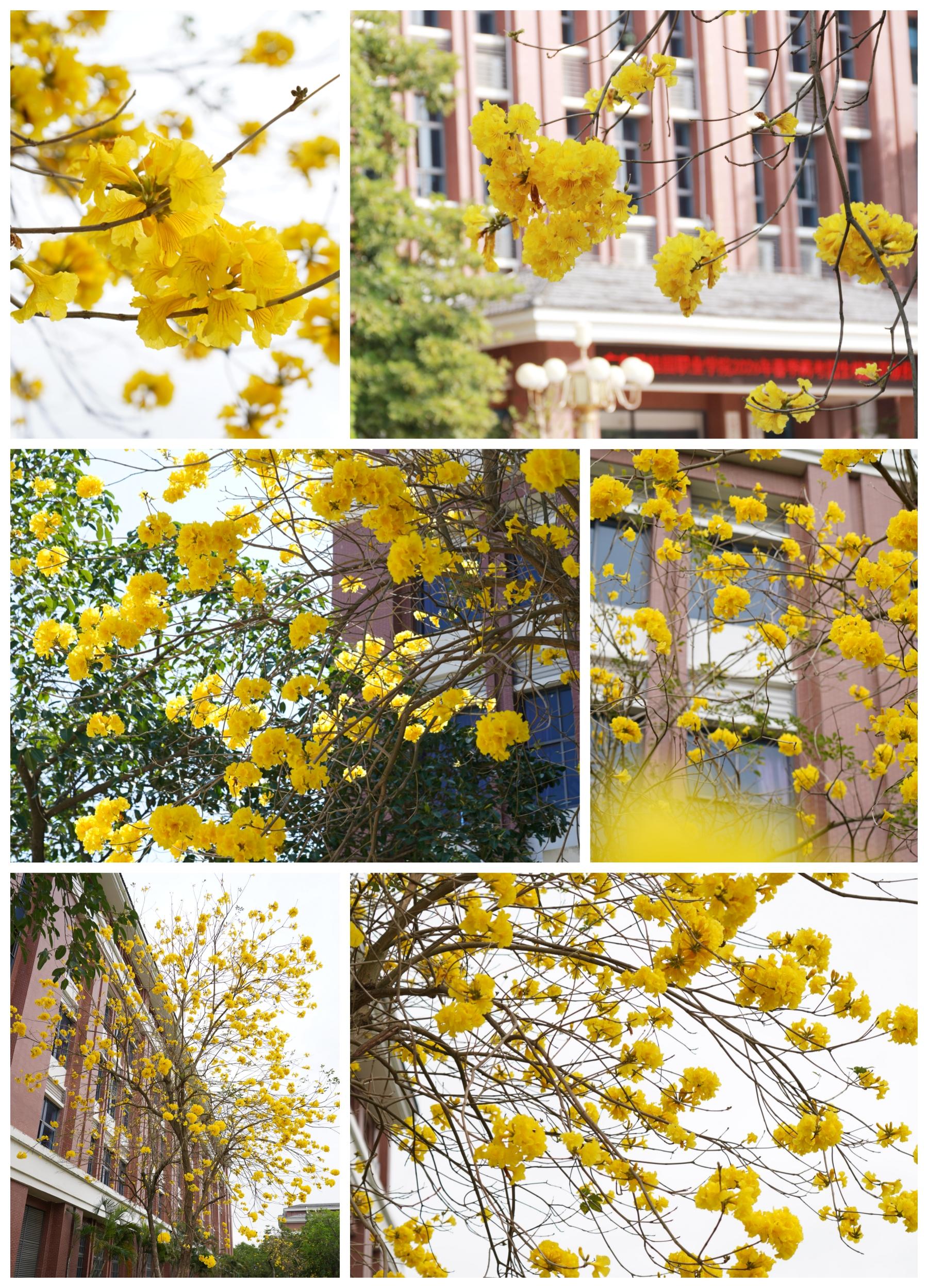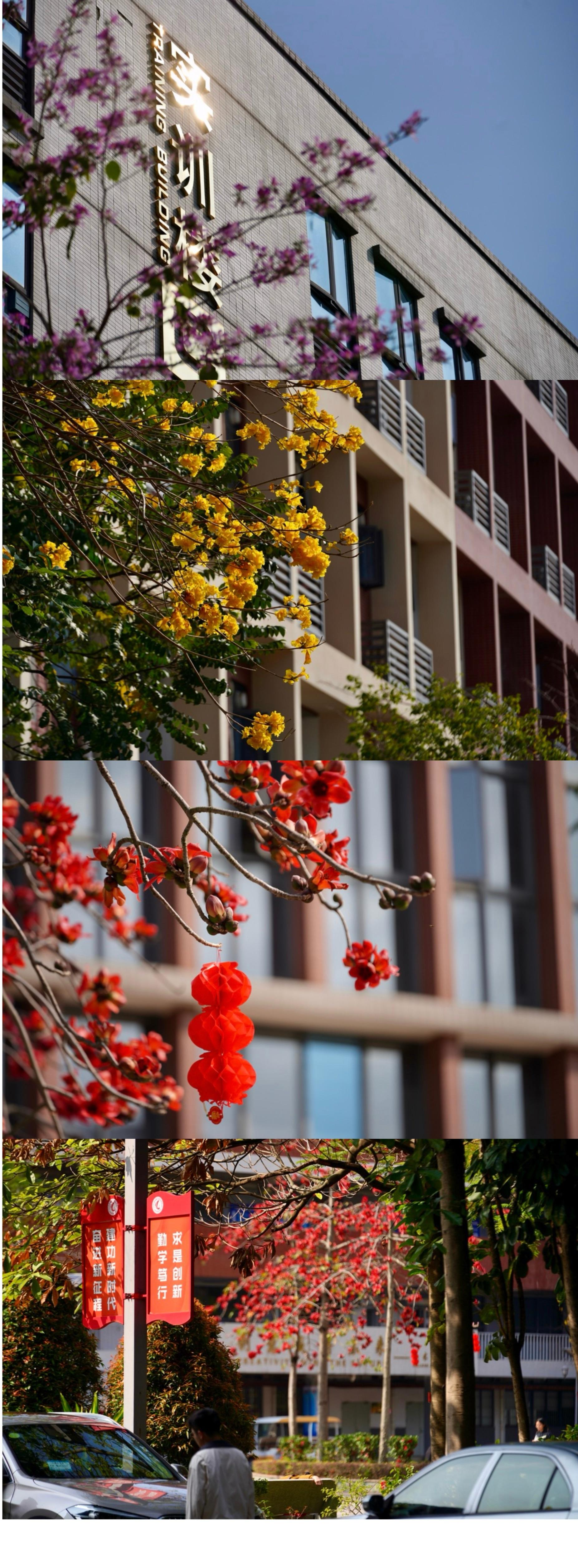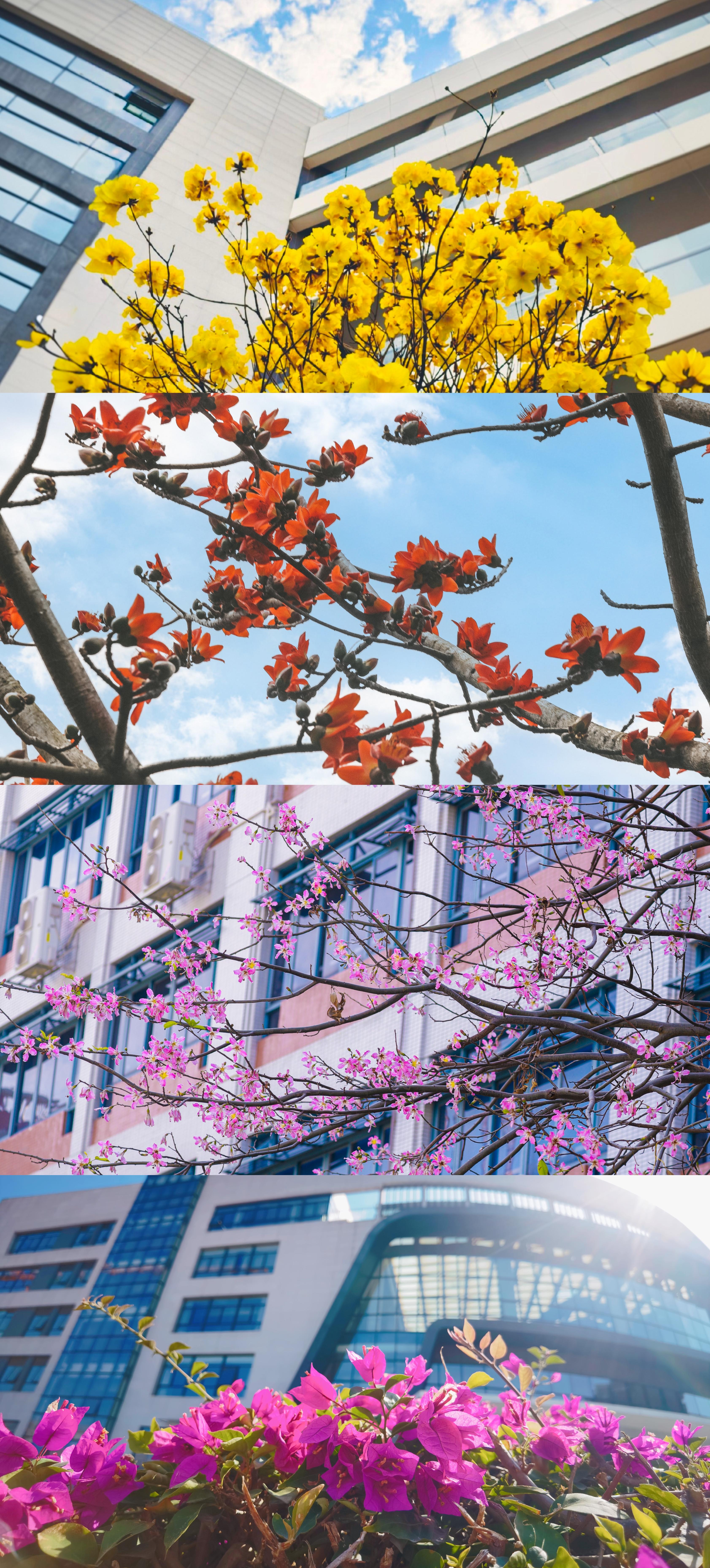 漫步松田校园,黄花风铃木灿灿如金,缀满枝头;粉色的羊蹄甲烂漫似霞,随风摇曳;挺拔的木棉枝头绽放英雄花,如火如炬,映照着青春的脸庞,也点燃了春日里的蓬勃朝气。