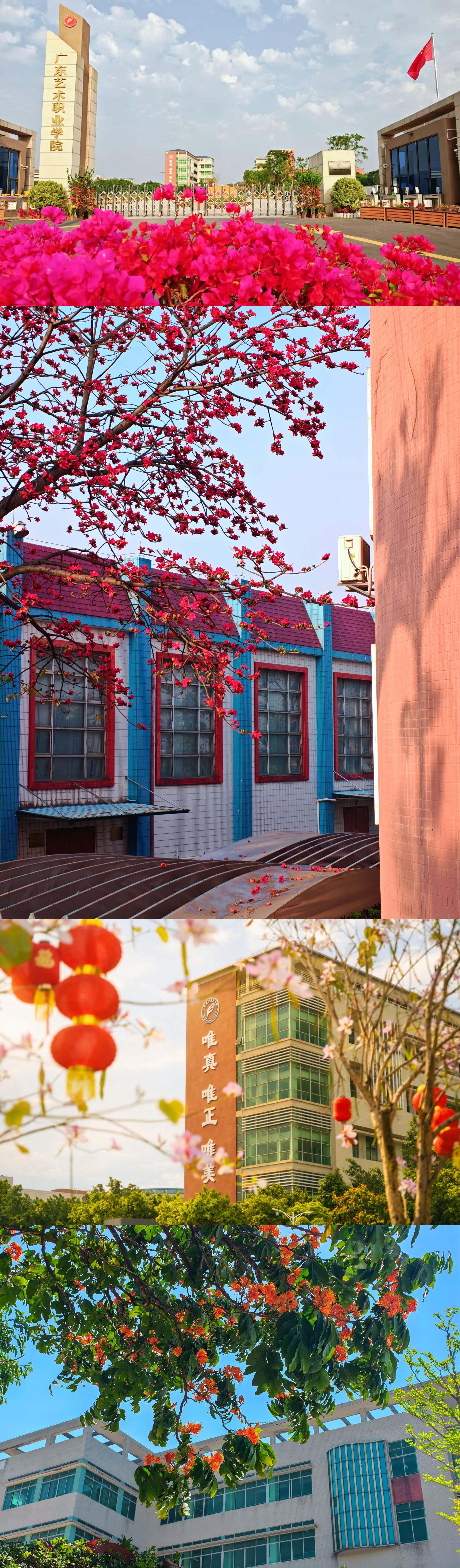 春和景明,万物勃发,广东艺术职业学院的新学期,处处皆是繁花缀景、艺韵满庭的动人画卷。木棉燃于枝头,殷红似火,挺拔昂扬;三角梅姹紫嫣红,缠绕出浪漫画卷;紫荆花缀满林荫道,粉白相间,随风轻舞;无忧花金黄明媚,暖意融融。花影伴艺声,青春逐梦行,每一处繁花、每一缕艺韵,都藏着学子们对艺术的热爱与对未来的期许,尽显艺术校园的繁花似锦与生机蓬勃。