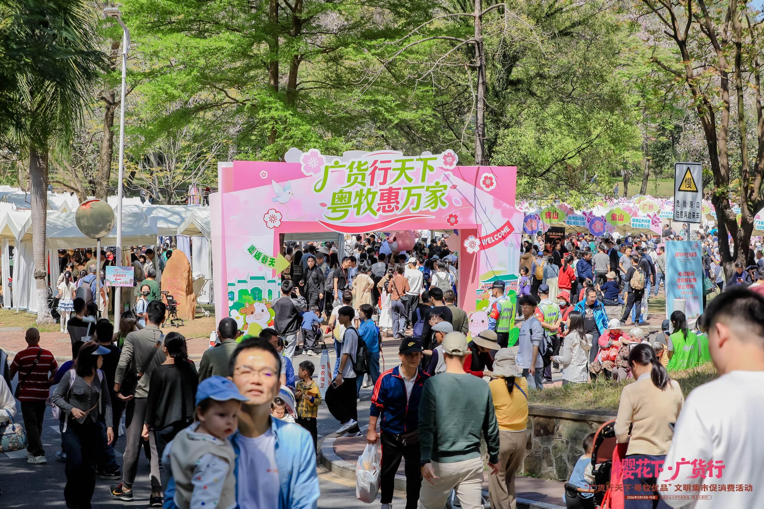 在集市上,商家回答着游人对于马冈鹅、狮头鹅、清远鸡等地标产品的提问;在科普现场,华农专家深度解读畜牧产品的品质标准与养殖前沿科技;人大代表、外国网红热情推介广货,助推广货走出岭南、走向世界。