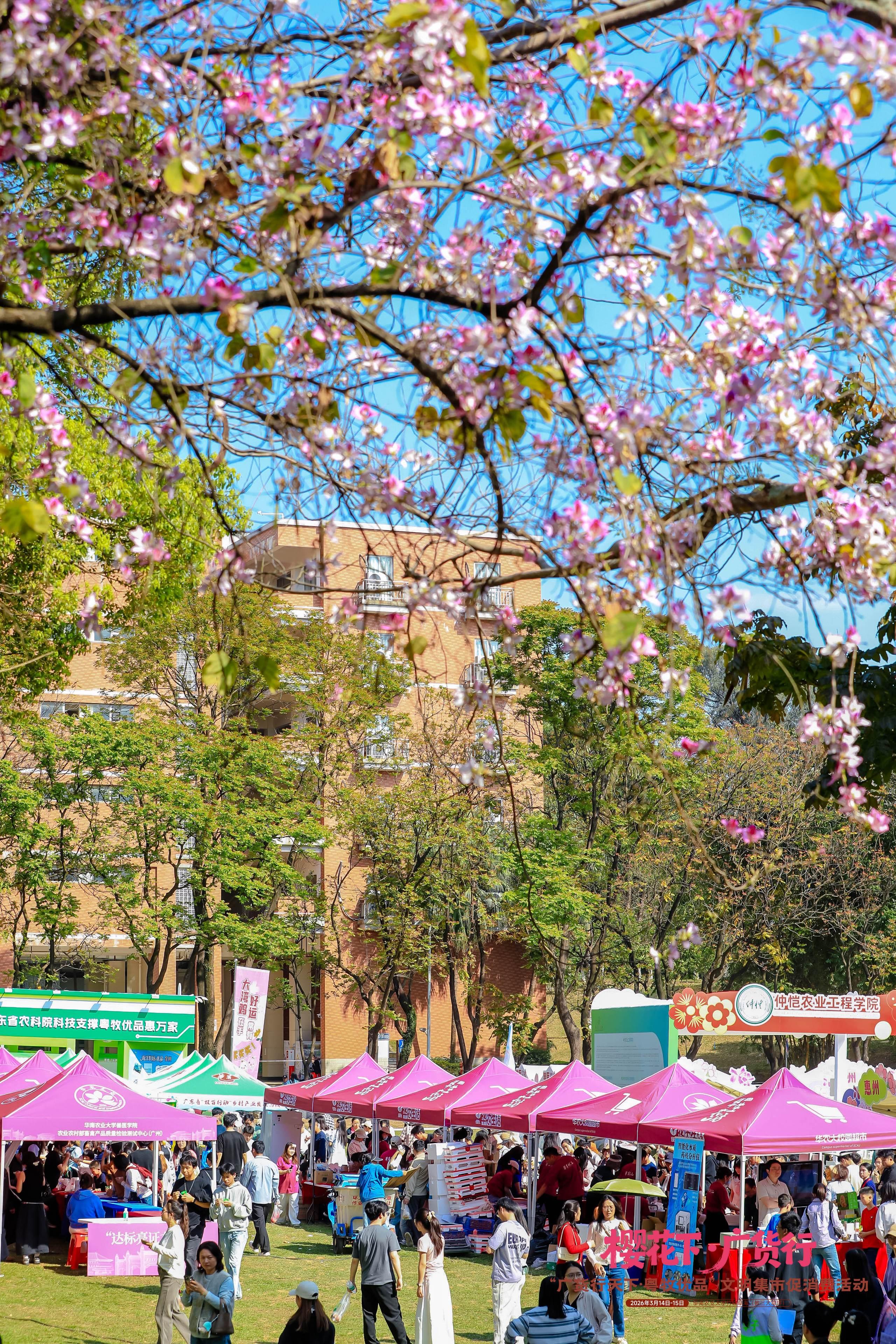 每逢阳春三月,华农便成为了广州市民赏花打卡的热门景点。这是本活动在此时此地举办的重要原因之一,将赏花游览与货品采购巧妙融合。
