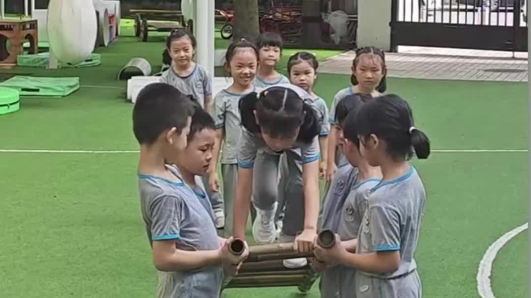 一截竹梯可以玩出多少花样?彩田萌娃“一物多玩”