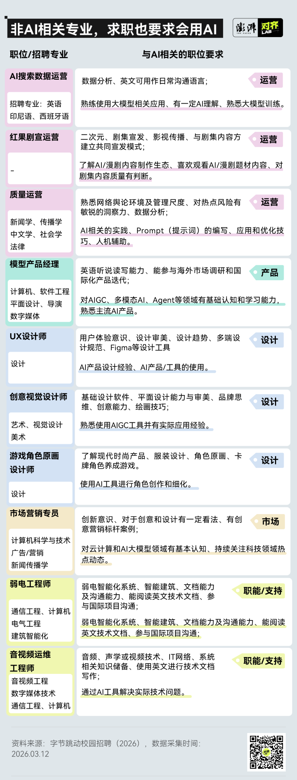 2026年春招启动以来,各家公司陆续发布职位,不少求职者高频地在职位要求里看到一个关键词:AI。