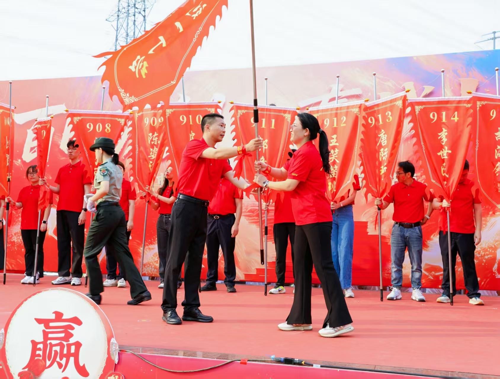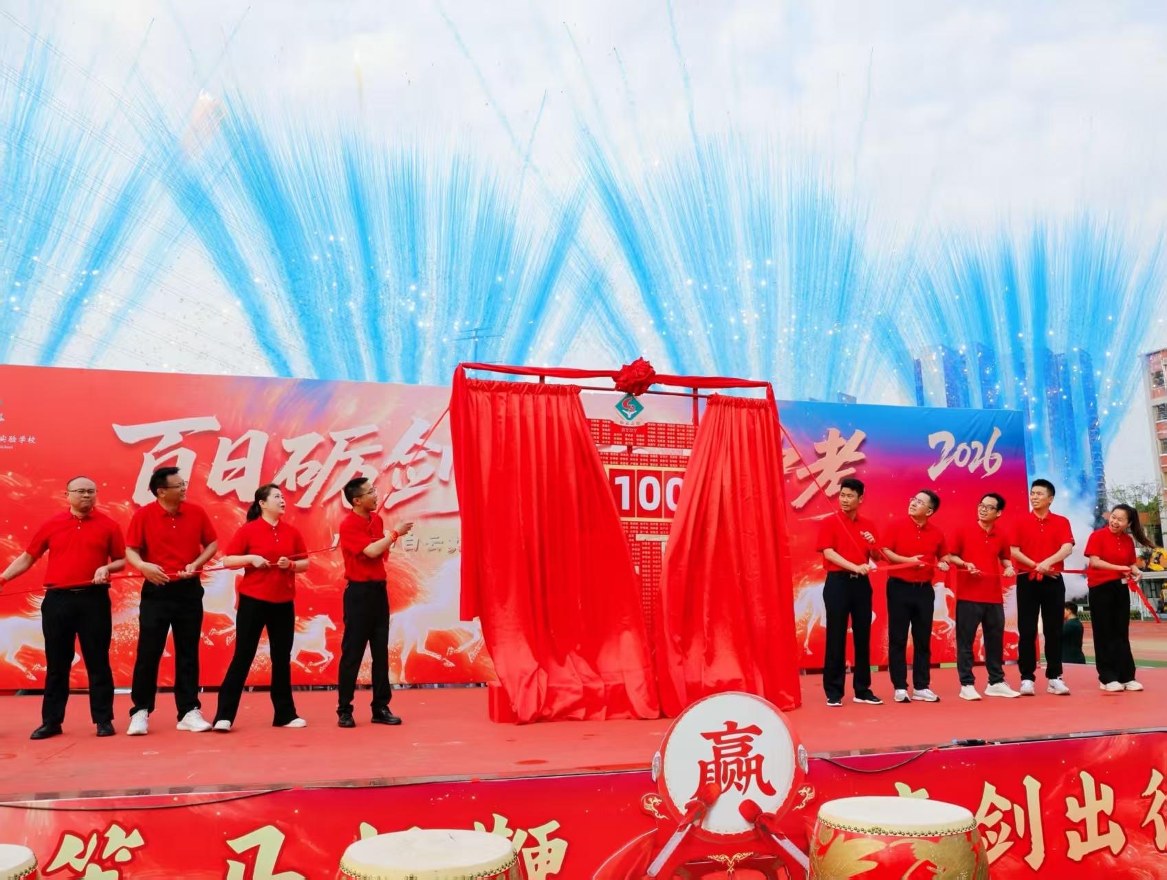 大会现场高潮迭起,60 名中小学代表并肩执旗,绕场奔跑,猎猎战旗在校园中飘扬,勾勒出奋进向上的青春模样。全场师生齐声高呼 “中考必胜!白省必胜!我们必胜!”,洪亮的口号声此起彼伏,响彻校园每个角落。在全场倒计时的热烈氛围中,学校领导为中考倒计时牌揭幕,绚烂的礼花腾空绽放,全体师生共同唱响《海阔天空》,将现场气氛推向顶峰,也为百日冲刺拉开了正式序幕。