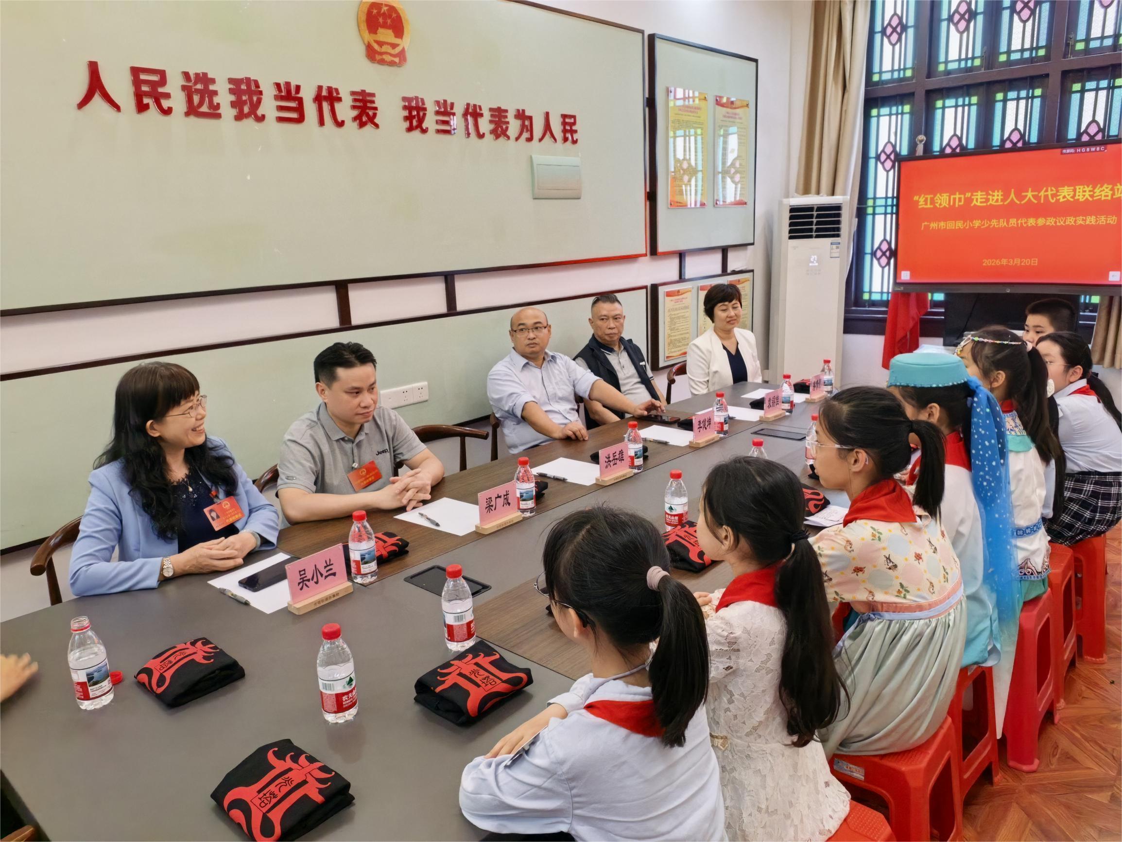 “作为一所多民族融合的特色学校,广州市回民小学始终秉持‘融和互惠,美善共生’的办学理念,深耕大思政教育,铸牢中华民族共同体意识。”广州市回民小学党总支书记吴小兰表示,此次活动并非偶然,而是学校推动“校家社”协同育人、将政治资源转化为教育资源的常态化实践。学校不仅定期组织少代会鼓励学生建言献策,推动“红领巾走进人大联络站”活动常态化,还构建了完整的“大思政”实施体系:邀请人大系统专家开展台海形势、国家安全等专题讲座,组织教师开展思政专题培训,32名党员教师下沉44个班级讲授思政课实现全覆盖,还运用AR技术制作爱国教育视频,打造沉浸式思政课堂。同时,学校深耕中华优秀传统文化传承,设立“国艺馆”、组建武术队等特色社团,将非遗广彩融入校园环境,还与香港、成都、康定等地10所左右学校建立“手拉手”关系,让民族团结与文化传承的种子在孩子们心中生根发芽。