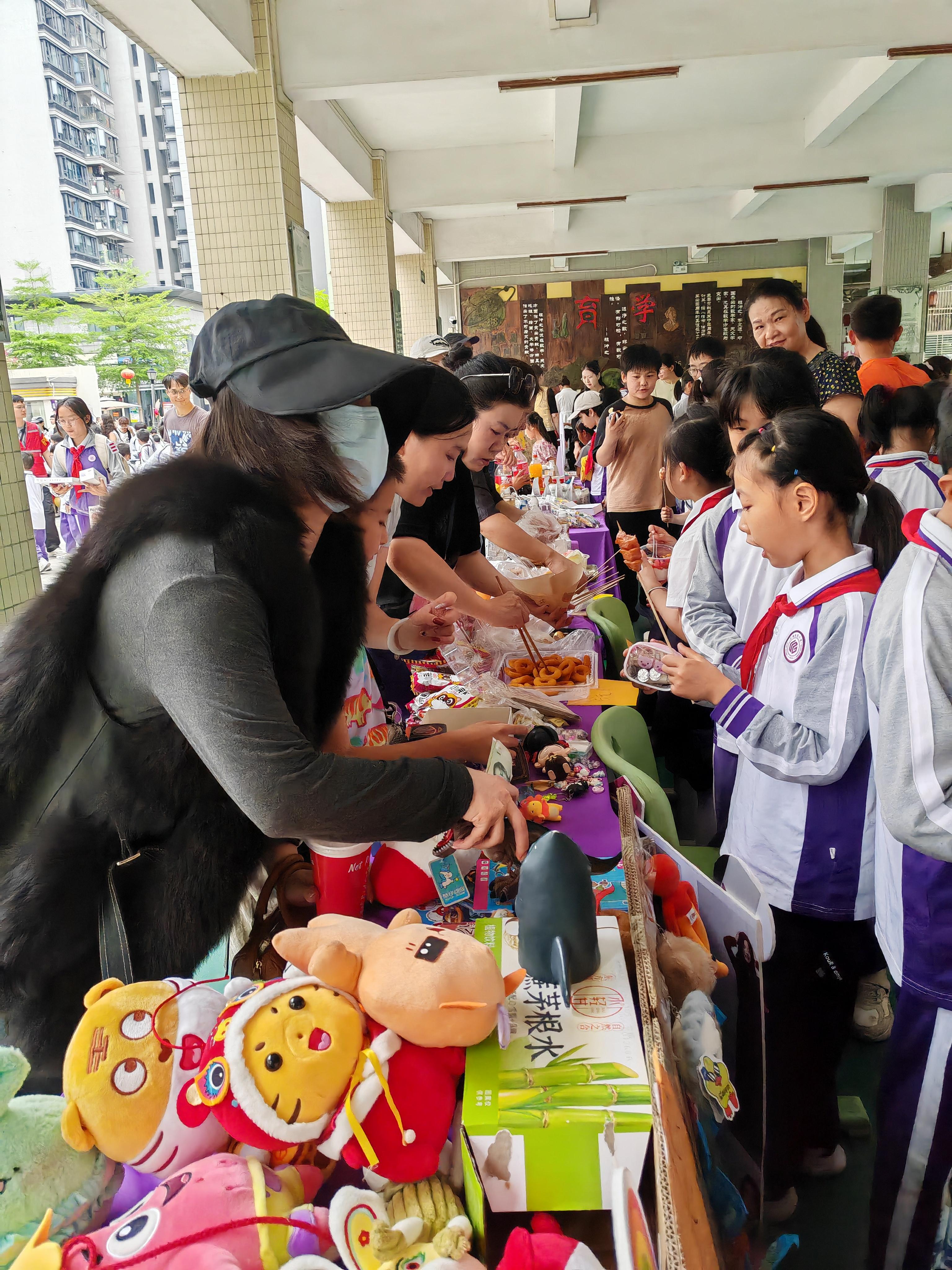 下午,义卖活动正式拉开帷幕。校园内,各班级摊位布置精美,创意十足的广告牌、朗朗上口的广告语吸引着师生和家长的目光。同学们化身“小小售卖员”,各显神通,热情地吆喝宣传,叫卖声、讨价还价声交织在一起,汇成了充满活力的校园交响曲。摊位上,闲置图书、趣味玩具、实用文具一应俱全,还有家长们精心准备的特色美食,丰富的物品让现场热闹不已。孩子们在自主交易、主动交流中,不仅提升了表达能力和交往能力,更在轻松愉悦的氛围中收获了成长。