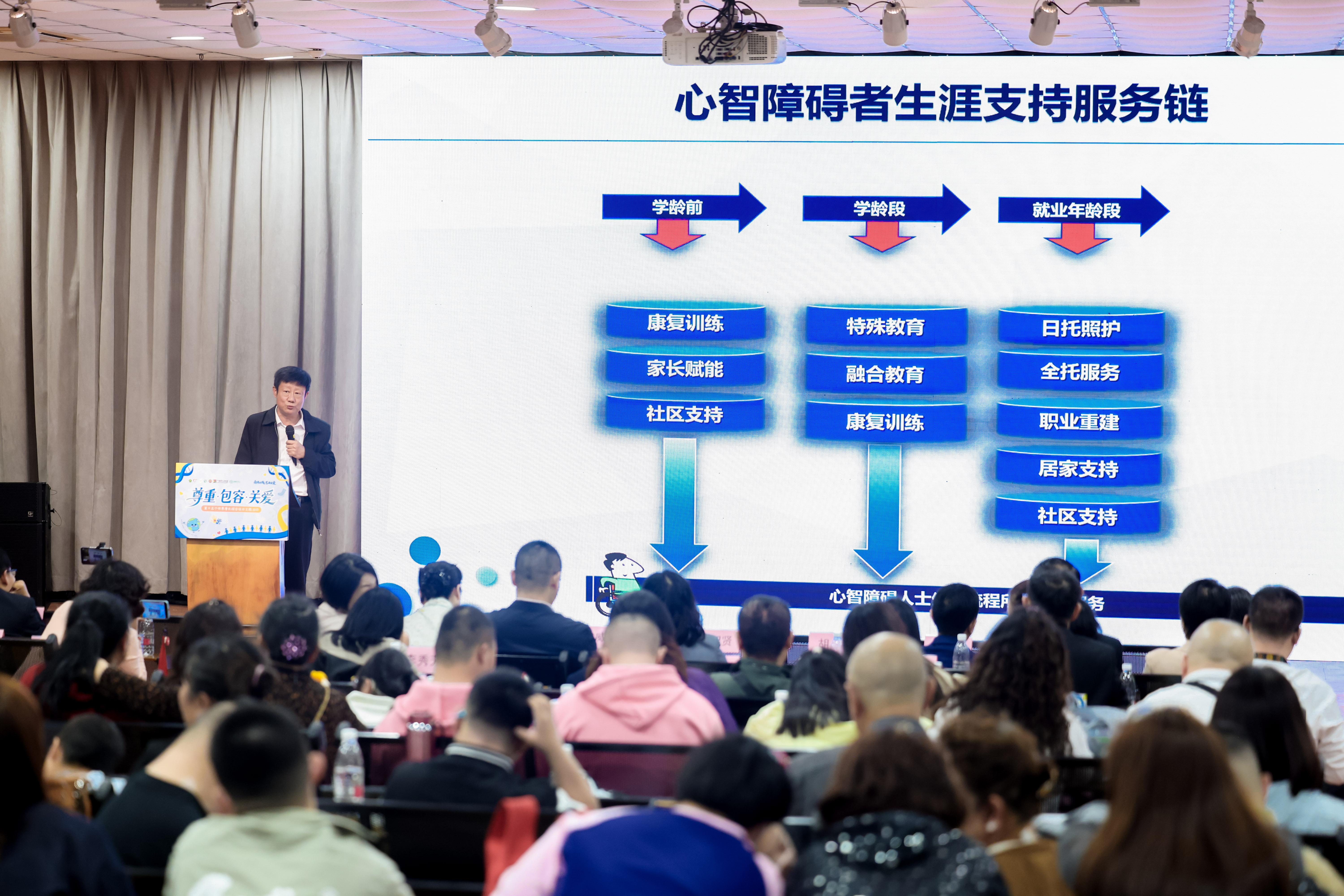 在3月21日上午的“多维支持,赋能发展”主题分享会上,“儿童发展、融合教育、健康运动、恋爱婚姻、未来托付、临终关怀”六大方面家长所关心的议题轮番展开分享讨论。其中,中国智力残疾人及亲友协会主席胡斌与广州市扬爱特殊孩子家长俱乐部名誉理事长戴榕,分别带来了《心智障碍人士临终关怀服务》的深度剖析与《唐氏综合征人士家庭需求与未来托付研究报告》的数据解读。报告中,家长们最关注的问题,正是孩子未来的托养安置。