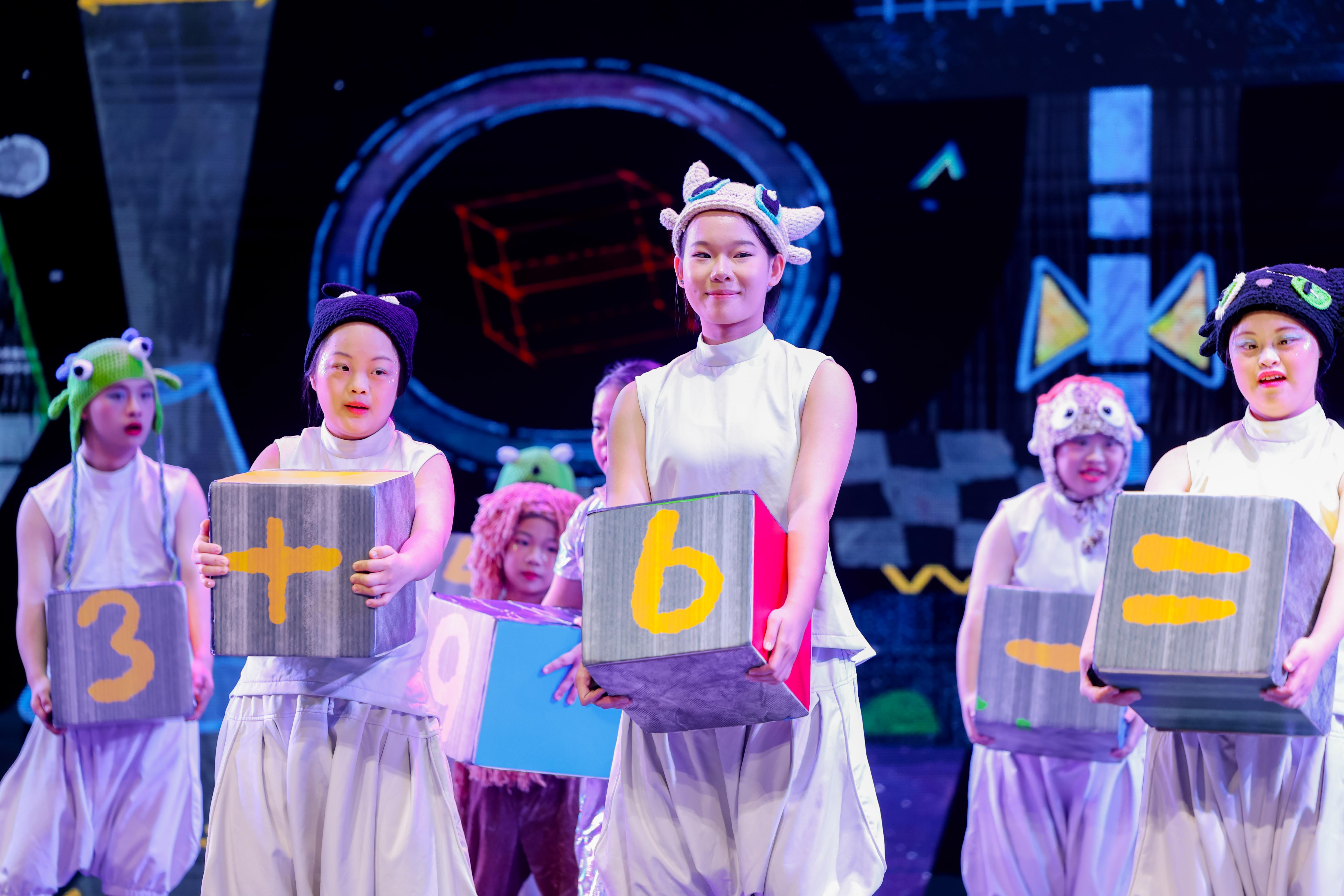 汇演的高潮,是广州市少年宫“雨后彩虹”唐宝宝融合舞蹈团带来的原创公益舞剧《宇宙的秘密》。该剧根植于少年宫28年的融合教育探索,从孩子们日常训练中迸发的真诚情感与坚韧生命力中汲取灵感,将真实的成长故事转化为舞台上的动人诗篇。经过一年的精心打磨,这部长达一小时的剧在3月21日正式公演,反响热烈,大获成功。