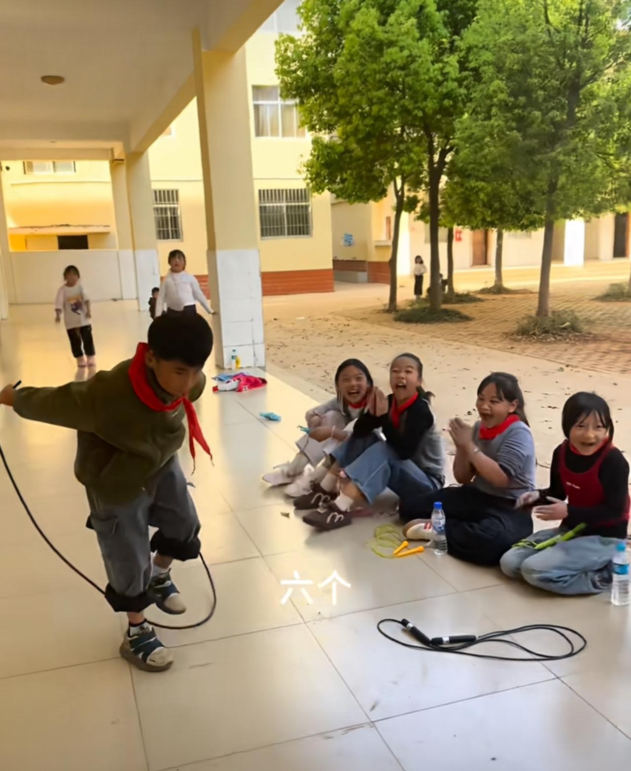 视频里的场景简单却温暖:春日的校园操场上,同学们大多能熟练跳绳,唯独一名小男孩屡屡受挫,始终无法掌握甩绳与起跳的配合节奏。