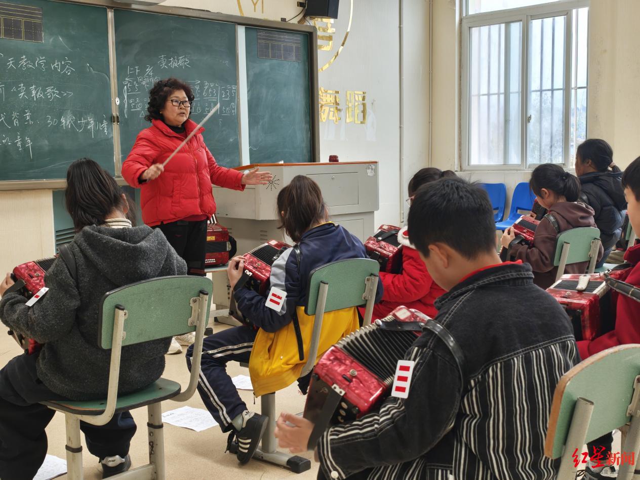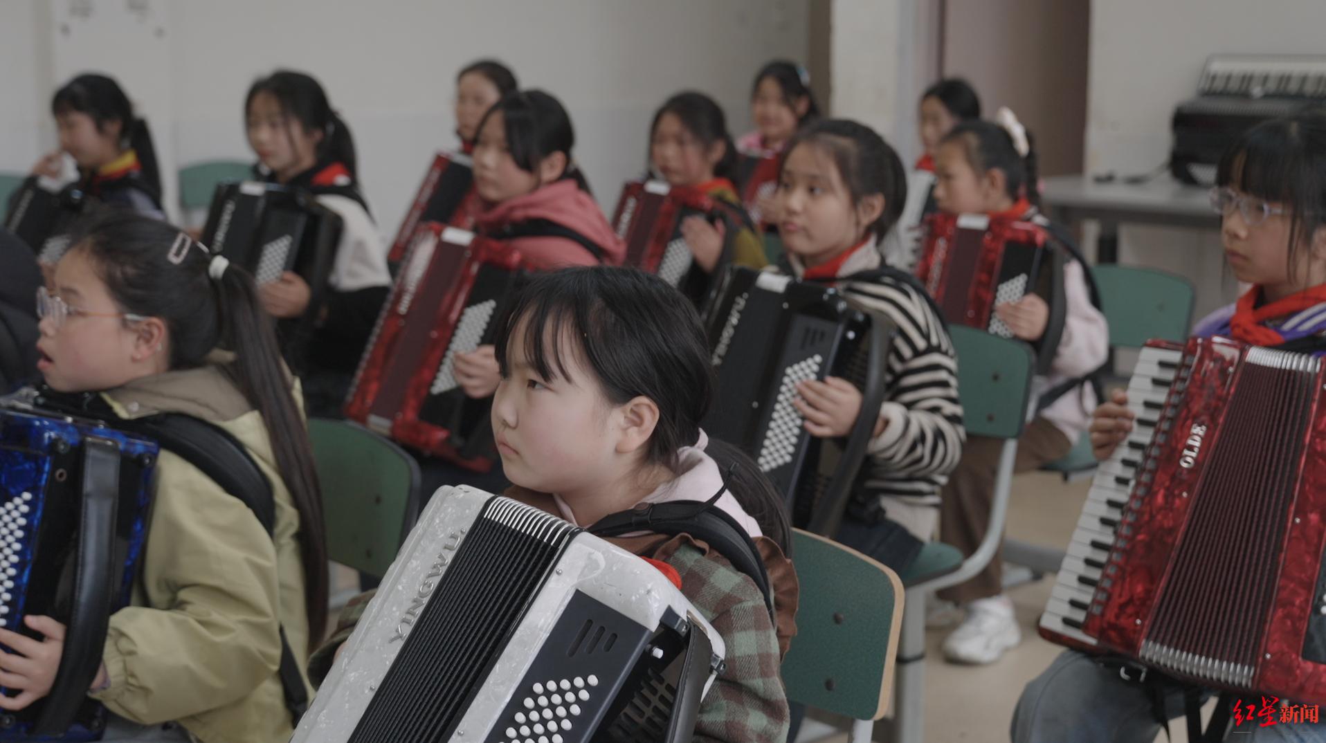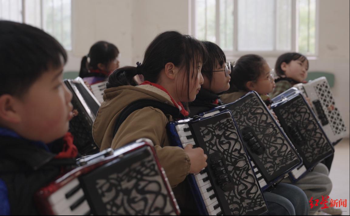 也有更多人跟随梁正春的脚步到了火井小学。他之前的“学生”徐阿姨,来帮忙教初级班;一位拉马头琴的琴友,也来火井小学开了马头琴课。山村校园里,不仅有了手风琴的悠扬,还第一次有了不同乐器组成的交响。