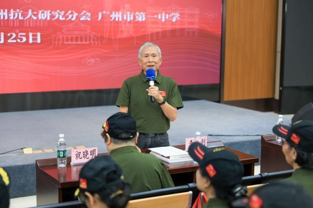 活动在广州抗大研究分会义务宣传员代表齐唱《抗日军政大学校歌》中拉开序幕。雄浑嘹亮的歌声和现场热烈的掌声激荡人心,抗大精神在代代传唱中生生不息、薪火相传。
