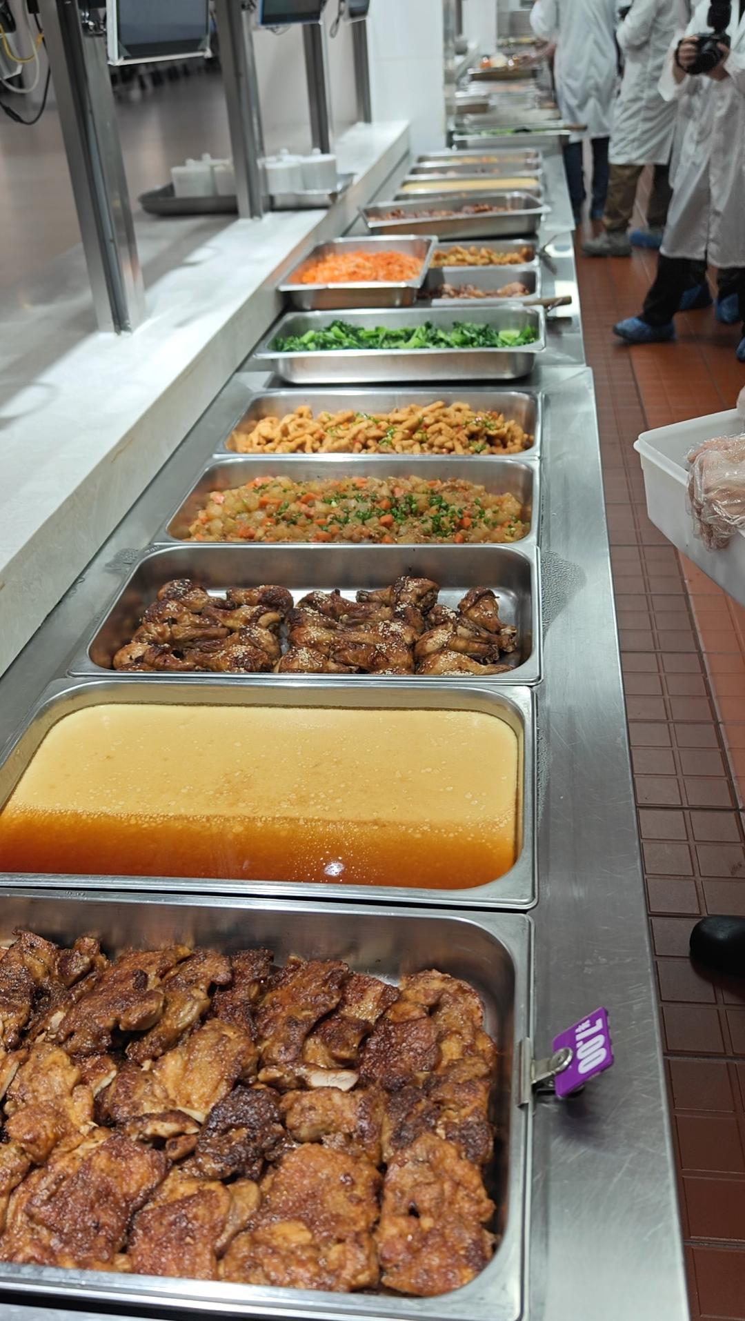 张成介绍,学校食堂为食品安全A级食堂,占地面积约6000平方米,共两层,可同时容纳1500名师生就餐,“透明化”“精细化”“标准化”是食堂管理的核心要求,“大家可以看到各种流程,我们都是靠数据说话”。